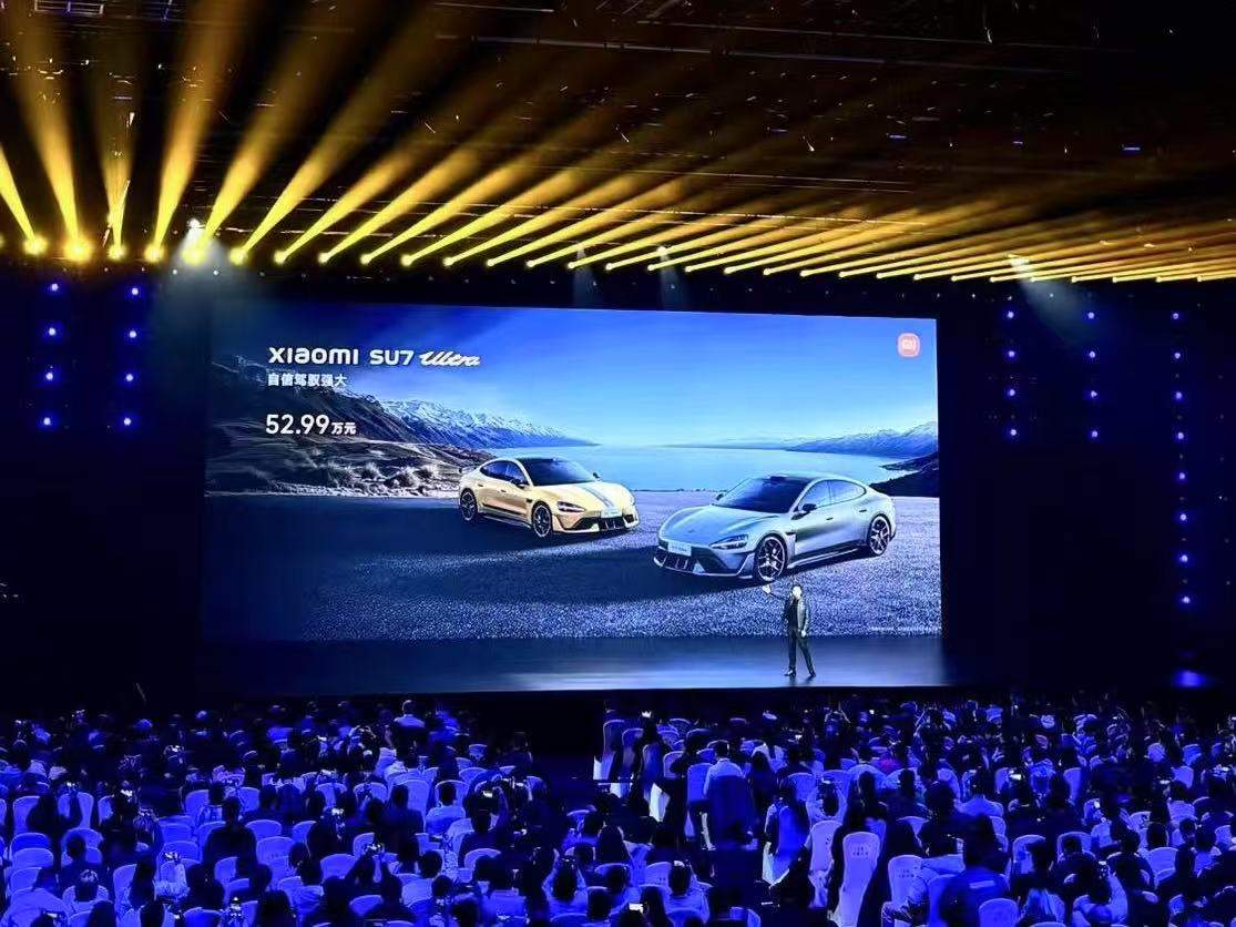 被雷军称为“开启全新时代”的双Ultra毫不意外地引爆舆论。 2月27日晚间,小米同时发布两款高端定位的Ultra产品――小米15系列手机旗舰机型小米15 Ultra和性能轿车小米SU7 Ultra。讨论如潮水般迅速蔓延至各大社交媒体平台,瞬间汇聚成铺天盖地的声浪,席卷网络空间。 于外界而言,两款产品的定价都属“意外之喜”。小米集团创始人、董事长兼CEO雷军此前在直播中表示,因研发及器件成本走高,考虑到盈亏,小米15 Ultra需要涨价。而在本次发布会上,小米集团合伙人兼总裁、手机部总裁、小米品牌总经理卢伟冰宣布小米15 Ultra起售价为6499元,不进行涨价,希望获得消费者支持。随后他笑称,“下一代手机一定涨”。 同日,预热了五个月的小米SU7 Ultra正式公布售价――标准版52.99万元,较81.49万元的预售价下调28.5万元。这台直击特斯拉Model S、BBA腹地的新车,价格大大出人意料。发布会期间,“小米SU7 Ultra售价”相关词条直接登顶微博热搜。 根据小米汽车官方公布的数据,新车上市两小时,大定已突破1万台。这正是小米SU7 Ultra的年销量目标。对此有网友留言,“两小时完成全年KPI”。不过大定数据并不等同于最终销量。雷军在发布会上介绍,小米汽车为车主设置了168个小时的犹豫期,在此期间可以随时退回定金,超期自动锁单,则无法退定。 自2020年提出“高端化战略”以来,小米先是经历了短暂的阵痛期,而后逐渐找到了自己的节奏,从手机到智能家居生态,全方位拓展高端产品线。 受利好消息影响,早在27日上午,小米集团股价就一度创下历史新高。雷军财富也因此大幅增长,一度超越农夫山泉创始人钟,成为“中国新首富”。不过,很快雷军辟谣其为“假新闻”。或许是否成为“首富”对于雷军而言并不重要,但在高端化布局上,他的野心显然不止于双Ultra。 手机“全面对标苹果” 雷军在发布会上回顾道,小米15是小米最成功的旗舰手机产品。他援引相关数据称,2025年1月,小米手机以16.8%的市场份额位列国内智能手机第二。第一名是华为,vivo、OPPO、苹果都排在小米之后。 摄影功能的升级是小米15 Ultra的重头戏。该机型搭载了50MP徕卡主摄、50MP徕卡超广角、50MP徕卡长焦和200MP徕卡超长焦,组成“徕卡光学最强镜头组合”。 硬件上,徕卡1英寸主摄和徕卡2亿超级长焦被小米称为移动影像的“一皇一后”。据卢伟冰介绍,小米15 Ultra可以实现28倍无损变焦,此前行业最高倍数是22倍,四摄八焦段实现了无断档接力。 在夜景拍摄方面,据称,从光到传感器要经历10枚器件,小米用新材料、新技术和新工艺实现了全链路的极致管控,让传感器对光效做到更还原,小米15 Ultra的长焦综合进光量达到iPhone16 Pro Max的4倍。 小米15 Ultra(时代周报记者拍摄) 续航能力一直是小米在技术领域引以为傲的核心亮点。小米15 Ultra搭载了骁龙8至尊版处理器平台,并配备LPDDR5X内存和UFS4.1规格内存。新机型此次还升级了一块6000毫安时的小米金沙江电池,配备TET厚极片正负极定向流道、澎湃P3快充芯片、G2电池管理芯片,支持90瓦有线充电和80瓦无线充电。 为给大屏观影族和手机游戏爱好者提供更好的使用体验,小米15 Ultra配备了一块2K分辨率、522PPI、1-120Hz LTPO可变刷新、峰值亮度3200尼特的柔性OLED屏幕,屏幕基于CIE-170:2015空间校色支持P3色域、全自动色彩管理。 小米15 Ultra还搭载有立体声双扬声器、支持沉浸声;同时标配USB 3.2接口、T1s芯片支持独立卫星通信,射频层面还支持Wi-Fi 7 R2和5G-A。 值得一提的是,小米15系列也将全面支持苹果生态,可与IPhone、iPad、Mac等苹果设备实现照文件互传,并且支持Keynote、Pages、Numbers等苹果办公套件。卢伟冰在发布会上称,小米高端化战略已经进入第五年,未来小米将在产品、服务、生态兼容上“全面对标苹果”。 据他透露,小米手机未来五年高端化的目标之一,就是要在“6000元+”价格段实现规模化突破。“Ultra是6K+突破的关键产品,而小米15 Ultra会是越级式的一代产品。” 95后女生青青告诉时代周报记者,自己于去年7月首发购买了一台小米小折叠MIX Flip作为工作备用机。但因为担心小折叠屏幕小,使用起来不如直板手机方便,她仍将原有的iPhone 13 Pro Max作为主力机使用。然而在看完发布会后,她决定将主力手机更换为小米15 Ultra,“15 Ultra售价只有iPhone16 Pro Max的一半,加上拍照能力大幅提升,所以想入手一台看看。当然有一部分购买冲动是源于雷总的个人魅力。” 52.99万元,小米SU7 Ultra“击穿”BBA防线 “性能比肩保时捷、科技紧追特斯拉、豪华媲美BBA,重新定义豪车新标准”,这就是小米SU7 Ultra的目标,也是其高定价的原因。 小米SU7 Ultra采用与SU7一脉相承的家族式设计语言,但在细节上增添了运动属性。新车长宽高分别为5070×mm1970×mm×1465mm,轴距达到3000mm,除宽度外,尺寸数值均大于Model S。车身可选碳纤维部件多达21处,同时配备有主动式尾翼、固定式大扰流板、尾部主动扩散器等空气动力学部件,以提升空气动力学性能并减轻车重,使车辆风阻系数低至0.195Cd。 动力及续航方面,小米SU7 Ultra量产版采用与原型车相同的双V8s+V6s的三电机全轮驱动系统、赛道级高功率电池包及赛道版散热系统等核心技术,最大马力达到1548PS,最大扭矩达到1770N・m,不含起步时间0-100km/h加速仅需1.98秒,CLTC续航里程达到630km,在高压平台加持下11分钟可完成10%-80%快充。 雷军公布新车售价(时代周报记者拍