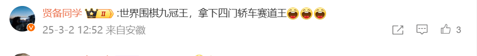 凤凰网科技讯 (作者/陈俊熹)3月2日,著名围棋棋手柯洁发微博称:“你们怎么知道我全款拿下小米SU7 Ultra啦”,并配上了付款记录。 截图显示,柯洁已支付4万元定金,49.39万元的尾款仍显示待支付状态。 有网友评论道,这是“世界围棋九冠王,拿下四门轿车赛道王”。 还有网友问:“什么时候能抽个副驾驶体验一波?” (责任编辑:刘畅 )