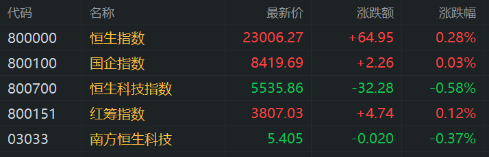 格隆汇3月3日|港股三大指数早盘冲高,午后曾全部转跌,继上周五大回调后未能出现强势回升行情。截止收盘,恒生科技指数跌0.58%,恒生指数、国企指数分别上涨0.28%及0.03%,市场做多情绪持续谨慎。 盘面上,大型科技股涨跌不一,阿里巴巴涨2.27%,腾讯、美团、快手涨幅在1%以内,小米跌近2%,网易跌超1%,京东跌1%;加密货币在周日纷纷上涨,比特币一度涨至95000美元,加密货币概念股大涨,细价股欧科云链飙涨42.6%,蓝港互动大涨近27%,博雅互动、雄岸科技皆强势;国家能源局正配合有关部门研究完善行业政策措施,光伏太阳能(000591)股集体拉升;澳门2月赌收同比升6.8%、环比升8.2%,濠赌股走强,钢铁股、互联网医疗股、风电股、黄金股、体育用品股、煤炭股、纸业股齐涨,另外,蜜雪集团上市首日大涨超43%,市值达1093亿港元。 另一方面,家电股多数下跌,海信家电(000921)跌近6%,美的集团(000333)跌3.9%,海尔智家(600690)跌2.4%,苹果概念股、餐饮股、锂电池股普跌,连续大涨的奈雪的茶跌18.57%。(格隆汇) (责任编辑:宋政 HN002)