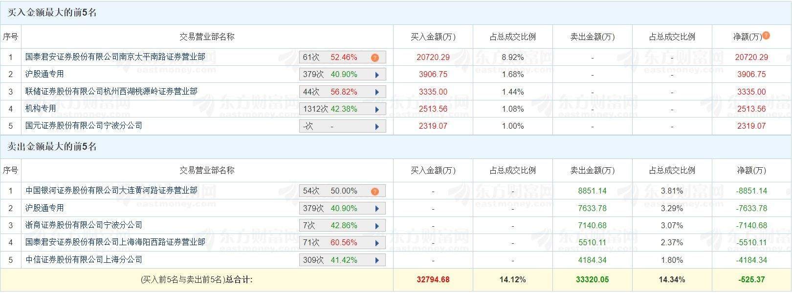 格隆汇3月3日|此前连续大涨的大位科技(600589.SH)今日跌停,成交额23.23亿元,换手率23.11%。龙虎榜数据显示,一家机构位列买四席位,买入2513.56万元;游资“作手新一”位列买一席位,买入2.07亿元;“陈小群”位列卖一席位,卖出8851.14万元;“章盟主”位列卖四席位,卖出5510.11万元。(格隆汇) (责任编辑:宋政 HN002)