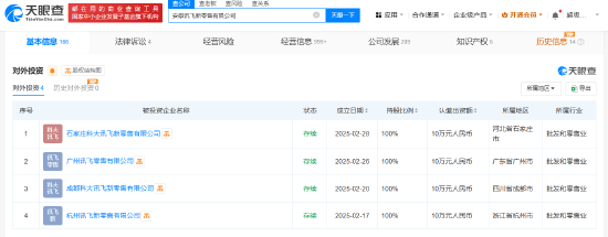 仟茂科技讯 3月4日上午消息,天眼查App显示,近日,广州讯飞零售有限公司、石家庄科大讯飞新零售有限公司成立,法定代表人均为徐荣盛,注册资本均为10万人民币,经营范围包括人工智能硬件销售、智能家庭消费设备制造、智能机器人销售、智能无人飞行器销售等。股东信息显示,上述公司均由科大讯飞(002230)旗下安徽讯飞新零售有限公司全资持股。 值得注意的是,不久前,科大讯飞已在成都、杭州成立新零售公司。(罗宁) 责任编辑:江钰涵 (责任编辑:张晓波 )