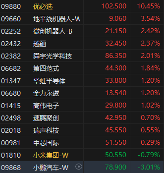3月4日消息,港股三大指数低开高走,截至收盘,恒生指数跌0.28%,报22941.77点,恒生科技指数0%平收,国企指数跌0.62%。盘面上,科网股涨跌不一,网易涨超2%,百度集团、腾讯控股、哔哩哔哩涨超1%,阿里巴巴跌近2%;汽车板块整体下跌,比亚迪(002594)股份跌超6%;机器人概念股普涨,优必选涨逾10%。 汽车板块整体下跌,比亚迪股份跌超6%。比亚迪股份今日宣布,公司已与高盛(亚洲)有限责任公司、UBS AG Hong Kong Branch及中信里昂证券有限公司(统称“配售代理”)于2025年3月3日订立了配售协议。根据协议,比亚迪将发行129,800,000股新H股,每股面值人民币1.00元,配售价为每股335.2港元。配售价每股335.2港元,较3月3日收盘价363.6港元折让约7.8%。 机器人概念股普涨,优必选涨逾10%。3月3日,深圳市连发“四计划”,万亿AI与千亿机器人打造AI先锋城市。计划到2026年,培育人工智能终端产业规模达8000亿元以上、力争1万亿元;到2027年,力争在机器人核心技术方面取得突破,新增百亿企业和十亿级应用场景;构建瞪羚企业、独角兽企业发现和培育壮大机制;到2026年,实时可用智能算力超过80E FLOPS。 来源:仟茂网 (责任编辑:宋政 HN002)