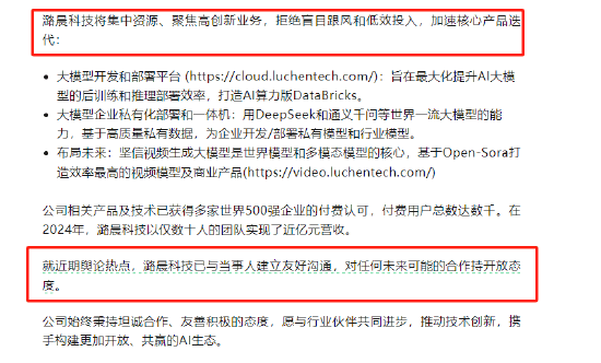 仟茂科技讯 3月5日上午消息,在公司创始人尤洋与硅基流动创始人袁进辉发生激烈“网络骂战”并引发舆论热议多日后,潞晨科技今日发布展望公告称,“潞晨科技已与当事人建立友好沟通,对任何未来可能的合作持开放态度。” 数天前,DeepSeek官方公布线上系统理论成本利润率达545%。但几乎在同一时间,潞晨科技突然宣布暂停DeepSeek API访问服务。而在公司暂停DeepSeek API服务一事被认为是引发热议后,尤洋也在回应硅基流动创始人袁进辉的过程中言辞过激,陷入了更深的舆论风波中。 据潞晨科技今日公告,“公司始终重视自主创新、知识产权和开源社区的规范,下一步将集中资源、聚焦高创新业务,拒绝盲目跟风和低效投入,加速核心产品迭代。”(文猛) 责任编辑:江钰涵 (责任编辑:张晓波 )