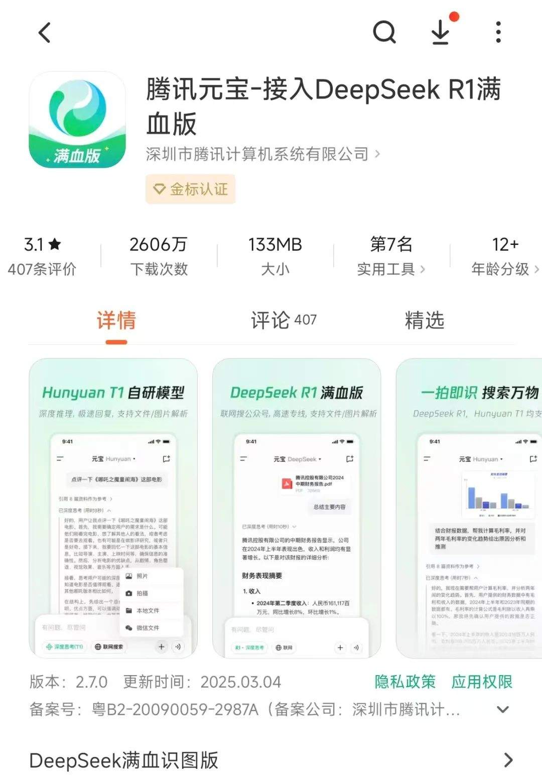 元宝会不会遭遇“榜首魔咒”? 定焦One(dingjiaoone)原创 作者 | 王璐 编辑 | 魏佳 AI圈的头号玩家又变了,从去年的Kimi,到开年的DeepSeek,现在轮到了腾讯元宝。 3月3日晚,元宝超过DeepSeek,在苹果中国区应用商店免费App下载排行榜位居第一。 一个月前,元宝还被外界认为是“最没存在感的AI通用型应用”。QuestMobile数据显示,在去年AI原生App排行榜中,元宝的月活用户规模仅位列第十一,而同类的豆包、Kimi、文心一言,分别占据前三。 元宝的“低调”与其上线较晚有一定关系,它是大厂中最后一个入局的TO C应用,但更重要的原因是,腾讯此前似乎并未对元宝投入足够多的资源。 2024年5月,元宝App上线,直到今年3月才推出网页版。去年豆包、Kimi在营销上竞争激烈,元宝更是迟迟不参加。 直到今年,元宝接入DeepSeek后,形势发生逆转。 腾讯旗下各大应用纷纷出现了“下载元宝”的广告,连一向“吝啬”的微信九宫格也给了元宝一席之地。除了在自家平台推广,元宝还在微博、B站、抖音等外部平台投入了大量广告。 短短半个多月内,元宝进行了7次更新,其中既包括接入DeepSeek、推出自研深度思考模型混元T1、快思考模型混元Turbo S等重大改变,还涵盖了新增一键导出对话长图、电脑版上线等功能。 就这样,元宝杀了出来。 长期来看,能否将当前的流量转化为用户留存,将是决定元宝未来命运的关键,否则有可能重蹈Kimi的覆辙,只是短暂地占据榜首。 元宝登顶,赢在哪里? 目前外界对元宝的疑问主要集中在,其从“小透明”一跃成为第一,究竟是靠实力,还是靠营销?这个第一名,有没有水分? 先来看元宝的模型能力。 不止一位从业者表示,双模型策略(既接入外部的DeepSeek,又有自研的Hunyuan大模型),是元宝的最大优势,国内热门的两大AI通用型应用――Kimi、豆包,目前都只内置自研大模型。 腾讯自研的Hunyuan大模型(混元T1/Turbo S)是元宝的独家,这两大模型于近期密集上线,混元T1在今年的2月17日推出,Turbo S则比它晚十天。 由于它们都属于闭源模型,没有权威的榜单排名,我们主要结合从业者的使用感受和公开论文对它们进行评价。混元T1侧重深度思考,和DeepSeek-R1类似,但AI行业资深从业者江树认为,其推理能力与国内其他家差距不大。 一位大模型领域知名专家也认为,从模型推出的时间和相关论文报道来看,国内推理大模型中DeepSeek和Kimi比较强,相比之下混元T1稍弱。 Turbo S属于快思考模型,主打速度,能实现“秒回”、首字时延降低 44%是亮点。 然而,从业者认为目前市场的关注点集中在大模型的深度推理能力上,快思考似乎已经“过气”,毕竟阿里Qwen系列模型、文心一言、豆包、DeepSeek直到V3版本,以及o1系列之前的GPT系列模型,都是快思考。 他们更倾向于认为,元宝登上下载榜榜首,主力选手是DeepSeek,很多用户为了尝试DeepSeek才下载元宝。 图源 / 应用商店APP截图 再来看投流。 元宝的这一波投流十分激进,一方面依靠内部生态(腾讯广告),另一方面靠外部渠道(抖音、快手等),AppGrowing数据显示,元宝2月的预估投放金额超3亿。 AI软件工程师覃相表示,元宝采取的是广撒网与精准触达的投流策略,微博、B站、抖音等外部渠道主要是为了扩大用户覆盖面。利用内部生态(微信搜索导流、朋友圈广告、QQ浏览器等腾讯系App全覆盖)才是最重要的,毕竟这些渠道的用户信任度高且场景关联性强,触达效率极高。 从事搜索工具投放的小A也告诉「定焦One」,目前AI搜索的主流渠道是腾讯广告。 AppGrowing数据显示,在AI通用型应用(元宝、豆包、Kimi、通义、文心一言)中的投流渠道中,占比最多是腾讯广告(微信、QQ、腾讯新闻、腾讯视频、QQ浏览器),能占到总投流渠道的70%-80%。 这一次,微信作为王牌渠道,为元宝提供了强大的流量支持。搜一搜中显示下载元宝(体验DeepSeek-R1)跳转链接;朋友圈信息流广告、公众号文章底部、小程序开屏页都有元宝的推送;还有微信九宫格入口嵌入。 此外,元宝在宣传中重点强调其联网搜索功能打通了微信公众号内容库,可实时检索超过2.1亿篇历史文章,并能在15分钟内收录日均新增的180万篇推文。小A觉得此举打出了元宝与其他AI应用的差异化,能吸引一部分用户。 不难发现,广告投放对元宝的登顶起到了关键作用,而腾讯生态的流量支持是其成功的重要基石。 元宝崛起,时机也很重要 在AI应用领域,广告投放已成为行业共识。此前的Kimi和豆包,凭借着投流抢占了不少市场。 特别是Kimi,作为一家初创公司推出的应用,靠着自身的技术优势和重金投流,去年在一众大厂中杀出重围。 从业者认为,投流在AI应用领域尤其有效,是因为AI应用体验门槛不高,用户也没有太强忠诚度,容易通过流量迅速转化。 江树表示,目前大模型的实用性仍不强,打造出的TO C应用吸引的用户多为尝鲜者,使用后往往会因产品不及预期(不聪明、不有趣、也不解决问题等)而迅速放弃。 这种用户行为模式,正是投流能够发挥关键作用的原因所在。而找准时机投流,还能达到事半功倍的效果。 元宝的投流时机就很巧妙。在DeepSeek教育了市场、用户对AI的认知度大幅提升后,投放效果比去年外界对AI认知度不高时要好得多。 江树认为DeepSeek的爆火呈出现出破圈层、全民向的特点,表明大众对AI大模型应用的认知已经形成。元宝又在DeepSeek-R1官网频繁繁忙的情况下,凭借稳定使用优势,承接住了DeepSeek用户,并通过投流进一步扩
