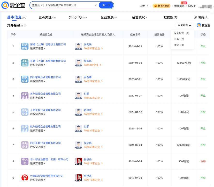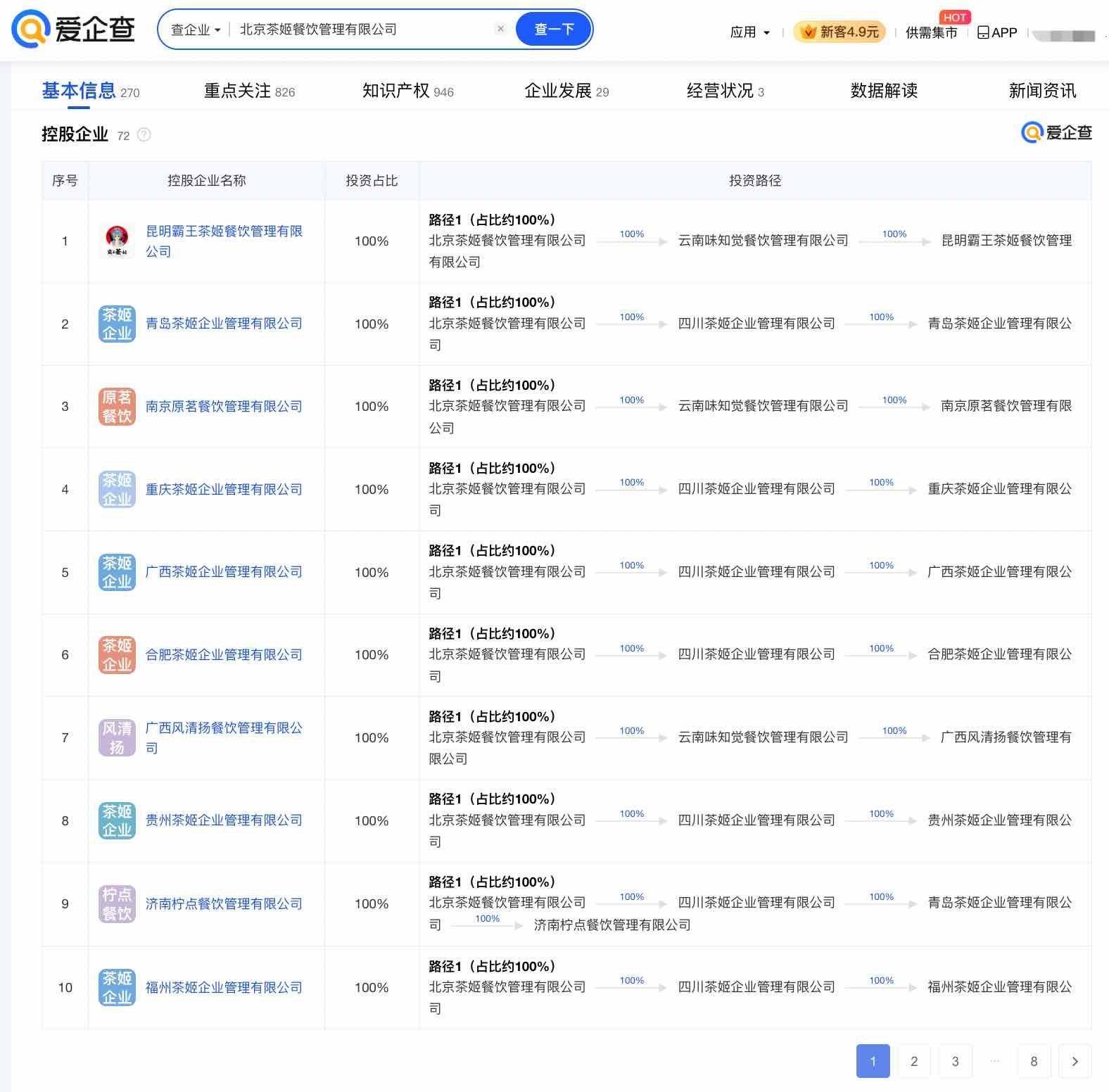 凤凰网科技讯 3月6日,中国证监会官网近日发布公告显示,茶姬控股有限公司(Chagee Holdings Limited)境外首次公开募股(IPO)备案获通过,拟发行不超过64,731,929股普通股,计划登陆美国纳斯达克或纽约证券交易所。针对此事,"霸王茶姬“品牌方向媒体回应称"以监管披露为准”。 据爱企查公开信息,霸王茶姬核心运营主体北京茶姬餐饮管理有限公司成立于2020年12月,注册资本达3799.97万元人民币,由张俊杰担任法定代表人。 该公司业务版图覆盖餐饮管理、食品销售、企业咨询等多元领域,直接对外投资9家企业中8家处于正常运营状态,地域覆盖上海、四川、浙江等主要经济区域。通过股权穿透分析,该企业已构建包含70余家实控公司的商业网络,涉及品牌运营、信息技术、供应链管理等新茶饮产业关键环节。 此次赴美IPO若成功实施,将标志着这家成立不足四年的新锐茶饮品牌正式开启资本化进程。值得关注的是,其6473万股的发行规模在新茶饮领域境外IPO中居于前列。 (责任编辑:刘畅 )