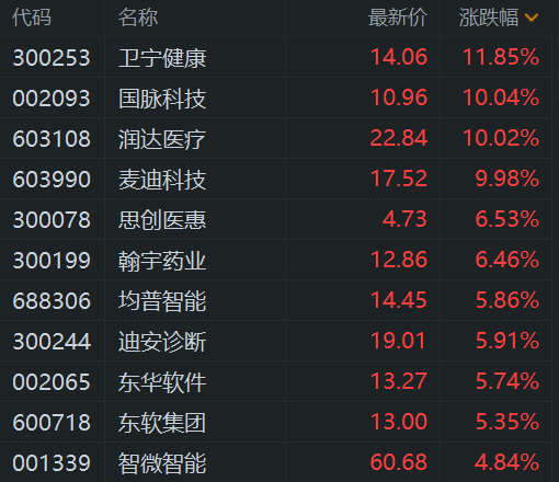 格隆汇3月10日|AI医疗概念股盘初大幅拉升,其中,卫宁健康(300253)盘初一度涨超14%,国脉科技、润达医疗(603108)、麦迪科技(603990)一字板涨停,思窗医疗、翰宇药业(300199)涨超6%,迪安诊断(300244)、东华软件(002065)、东软集团(600718)等多股涨超5%。 消息上,华为于3月8日正式成立“医疗卫生军团”,旨在整合5G、N腾AI及盘古大模型等技术,构建AI辅助诊断体系,推动医疗大模型临床应用。华西证券(002926)研报表示,华为新组建的医疗卫生军团或将整合华为在5G通信、云计算、边缘计算等领域的积累,依托N腾计算架构与盘古大模型的技术底座,打造新一代智能医疗系统。 国联民生证券则表示,2025年有望成为“AI+医疗”元年,DeepSeek的出现标志着算力成本的大幅降低,大模型平民化时代有望到来,AI产业逻辑从算力往应用端全面延伸。医疗板块具备较强AI应用挖掘潜力,一方面是很多细分产业会产生较多具备分析价值的高质量数据,AI赋能数据挖掘;另外一方面是医疗产业链相对复杂,各环节交互较多,适合商业模式的创新。(格隆汇) (责任编辑:宋政 HN002)