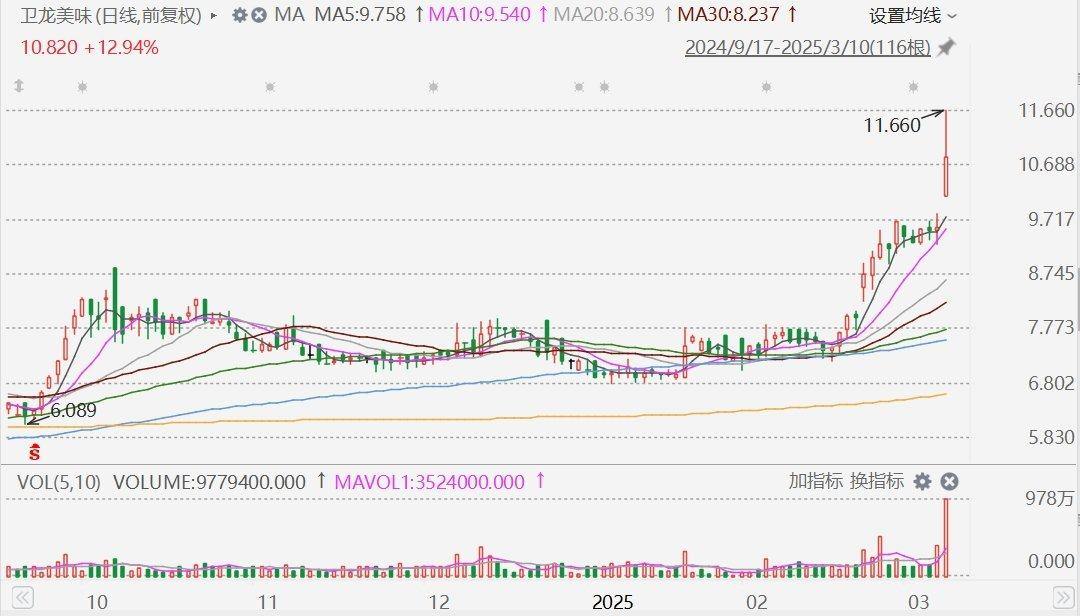 格隆汇3月10日|卫龙美味(9985.HK)盘初拉升涨近22%,报11.66港元,股价创上市以来新高,截至目前成交额放大至超1亿港元。消息面上,上交所和深交所纷纷发布港股通标的证券名单调整公告显示,卫龙美味获纳入港股通,调整自2025年03月10日起生效。市场人士指出,纳入港股通后,卫龙美味有望吸引更多内地投资者,或将提高流动性和估值水平。 (责任编辑:宋政 HN002)
