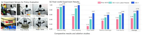 仟茂科技讯 3月10日上午消息,由原华为天才少年稚晖君(彭志辉)创立的智元机器人今日发布,首个通用具身基座大模型GO-1。 据悉,该模型开创性地提出了Vision-Language-Latent-Action (ViLLA) 架构,该架构由VLM(多模态大模型) + MoE(混合专家)组成,其中VLM借助海量互联网图文数据获得通用场景感知和语言理解能力,MoE中的Latent Planner(隐式规划器)借助大量跨本体和人类操作视频数据获得通用的动作理解能力,MoE中的Action Expert(动作专家)借助百万真机数据获得精细的动作执行能力,三者环环相扣,实现了可以利用人类视频学习,完成小样本快速泛化,降低了具身智能门槛,并成功部署到智元多款机器人本体。(文猛) 据悉,相比已有的最优模型,GO-1平均成功率提高了32%(46%->78%)。其中,在执行“Pour Water”(倒水)、“Table Bussing”(清理桌面) 和 “Restock Beverage”(补充饮料) 任务表现尤为突出。