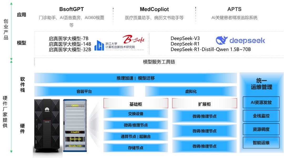 【大河财立方消息】据创业慧康微信公众号,3月7日,由华为技术有限公司主办、杭州N腾生态创新中心承办的N腾AI开发者创享日浙江站活动在杭州举办。大会以“创未来 享非凡”为主题,汇集了国内人工智能领域的顶尖专家学者、企业代表、开发者等近千人,共同探讨N腾原生生态的发展,展示最新的技术创新和成果。 大会上,创业慧康BsoftGPT・DeepSeek医疗行业一体机产品正式公开亮相。BsoftGPT・DeepSeek医疗行业一体机由创业慧康与华为联合发布,产品支持数十个医疗健康智能场景,覆盖临床决策辅助、病历生成、内涵质控、关键患者筛查、智能导诊、报告解读、健康咨询、慢病管理、体检总检推荐、管理决策辅助等多个场景,可以满足行业内的各类客户的业务需求。 创业慧康已与华为共同完成了近40款产品的认证,是国内医疗卫生行业首批获得鲲鹏原生开发认证证书的信息化厂商。创业慧康基于大模型的医卫Copilot产品,已经通过了华为N腾的AI框架N思MindSpore及相关硬件的相互兼容性技术认证,并获得了Ascend Compatible认证证书及认证徽标的使用权,实现了从AI软件框架到硬件设施的全面国产化适配。 实习编辑:金怡杉 | 审核:李震 | 监审:万军伟 (责任编辑:张晓波 )