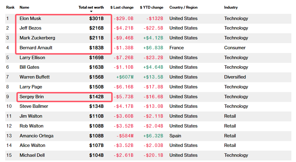 格隆汇3月11日|特朗普第二任期推动市场收益走高的期望已经落空。在特朗普就职典礼上,坐在他后方的许多亿万富豪的财富惊人地缩水。根据彭博亿万富翁指数,其中五人的财富,合计已蒸发高达2090亿美元。与特朗普宣誓就职当日(1月20日)相比,马斯克的个人财富净值缩水1480亿美元,贝佐斯个人财富下跌290亿美元,Google共同创办人布林财富流失210亿美元,扎克伯格和阿诺特财富分别蒸发60亿美元和50亿美元。这五位富豪的财富,总计缩水了2090亿美元。仅昨天一天,五位富豪的身家共锐减497.8亿美元. (责任编辑:宋政 HN002)