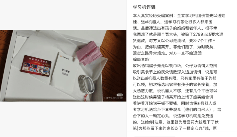 摘要: AI大潮席卷而来,越来越多人想体会科技进步带来的升级与便利。然而不少商家却存在夸大其词,盲目神话AI功能的情况,利用家长们的知识盲区兜售AI产品。 凤凰网科技 出品 作者 周遐观 编辑 董雨晴 来自北京的赵明(化名),近期自认栽了个跟头――花费近6000元为三年级孩子购置的AI学习机,宣传的“AI精准辅导”“一对一伴学”功能与实际严重不符,仅用了一个月就“吃土”了。事实上,多数家长都很难逃出学习机的困扰。小红书平台上,与学习机相关的笔记多达131万篇,关联词条中不乏:学习机到底是不是智商税、学习机有没有必要买等话题。 近年来,大模型的火热让教育赛道重燃热火,相关落地应用层出不穷。学习机这个看似富有技术含量的产品,也越来越多打起AI的旗号,但实际用起来,却又存在诸多漏洞。凤凰网科技近期在北京某商场发现,作业帮、步步高的学习机便存在课程资源参差不齐、AI功能宣传与实际不符等问题。 随着新学期到来,AI学习机作为家长眼中的 “助学神器”又一次热度飙升,为何其市场却乱象丛生,卖家大力宣传的AI功能真的配得上几千元的高价吗? “6000元的学习机,孩子只用了一个月” 3月,全国各地学校纷纷开学,AI学习机作为热门 “助学神器”,再次成为大家关注的焦点。不过,市场上对 AI学习机的评价褒贬不一,争议不断。 赵明就有一肚子苦水要倒。随着孩子迈入小学三年级,赵明和妻子日常最恐惧的就是辅导作业。去年9月,被作业折磨得心力交瘁的赵明,咬咬牙花了近6000元,买了一款当时很火的AI学习机。“孩子还小,写作业时注意力不集中,得有人盯着。为了辅导孩子学习,我和妻子没少吵架。”赵明无奈地说,“为了能轻松点,不用再对着孩子大吼大叫,我们把市面上的学习机研究了个遍,最后选了这款带‘一对一辅导’功能的,想着能让专业老师帮忙管管孩子。” 图|受访者供图 这款学习机比同类产品贵了 2000多元,不过功能确实丰富,有校内同步课程、作业批改、视频答疑,还有伴学、AI精准辅导以及名师培优课等。这些功能对赵明一家来说算是救星:“孩子小,得有专业老师监督辅导,当时觉得买这学习机挺划算的。” 可等孩子真正用起来,那些被销售吹得神乎其神的 “AI精准辅导”“一对一伴学”功能,却让人失望。“所谓的AI精准辅导根本不精准。”赵明吐槽道:“学习机里的查漏补缺测试题,也抓不住孩子的知识薄弱点。我家孩子测试得了 60分,学习机就让复习整个章节;要是考了 95、100分,感觉又不需要学习机了,完全没体现出 AI的智能。” 最让赵明夫妇生气的,是 “一对一辅导”和 “伴学自习室”功能,实际体验和销售宣传的完全不一样。赵明回忆,销售当时说,一对一辅导是名校毕业的老师进行一对一教学,伴学自习室有专人老师在线监督孩子写作业。“可实际上,所谓的名师一对一辅导,就是个录播课;伴学自习室一次时长2小时,没啥互动,孩子最多坚持半小时到一小时,最后还是得我们家长陪着。” 更让赵明无语的是,伴学自习室的摄像头只能拍到孩子头顶,根本拍不到作业,“这功能简直形同虚设,一点用都没有。” 功能宣传存虚,消费陷阱频现 凤凰网科技也走访了位于北京的某大型商场,这里有作业帮、步步高等多个品牌的AI学习机在售,AI标识十分醒目,价格从3299元/台到11999元/台不等。 图|AI学习机展示柜台。图/凤凰网科技 近期DeepSeek的火热,也引发了家长群体的讨论,包括网易有道、学而思、读书郎在内的多家教育公司更是跑步入场宣布接入DeepSeek。凤凰网科技走访的这两家学习机品牌销售人员也表示,自家的AI学习机可以直接用生成式大模型。作业帮的销售称:“学习机内接了DeepSeek,可直接调用”。步步高则表示“可以通过网页端访问DeepSeek页面”。还有品牌一直强调自家产品的科技属性,反复说用的是自家的大模型。 为了体验这些学习机的实际智能表现,凤凰网科技分别向这两家主销的学习机提了两个问题:“用通俗易懂的话,解释下什么叫光的波粒二象性?”“李白是不是每天都喝酒,喝完酒就能写出好诗吗?” 结果,可能是因为商场里人多嘈杂,作业帮售价 5699元的 AI学习机 X58,连问题都没听清楚,把 “光的波粒二象性”错听成了 “玻璃二象性”。步步高的 AI智能助手回答得干巴巴的,就像在念概念,在体验上并无惊艳效果。 从教学资源来看,因为这两家品牌出身不同,学习机里的课程也不一样。作业帮原本是做在线教育的,它的学习机内置了自家的课程和师资。销售自信地说:“买了学习机,从小学一年级到高三毕业的所有课程都能直接用,不用再额外花钱。 步步高售价 3988元的 A8学习机,配置的是新东方的课程,主打紧跟教材,贴合当下学习需求。销售人员在介绍时反复强调:“和别家不一样,我们的教材都是出版社正版授权的,孩子听到的英语发音和在课堂上一模一样。”不过,在了解过程中,有熟悉学习机行业的人士悄悄告诉凤凰网科技:“步步高学习机的软件和课程更新,没办法自动完成,只能去门店,通过门店的电脑下载更新,不太方便。” 还有品牌把宣传重点都放在了硬件上。销售人员介绍:“我们是科技公司,学习机用的是很先进的 AI三引擎 8核芯片、1600万像素自动翻转的摄像头,还有能发出类自然光的护眼屏……”当被问到科技公司怎么保证课程教学效果时,销售说:“我们的学习资源在行业