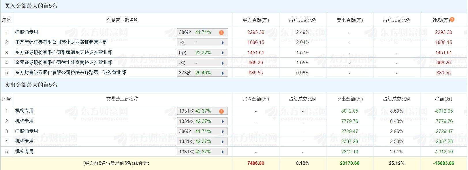 格隆汇3月12日|索通发展(603612)(603612.SH)今日跌5.68%,成交额9.22亿元,换手率10.19%。龙虎榜数据显示,四家机构占据卖一、卖二、卖四及卖五席位,卖出2.04亿元。上榜席位全天买入7486.8万元,卖出2.32亿元,合计净卖出1.57亿元。(格隆汇) (责任编辑:宋政 HN002)