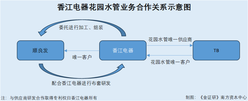 《金证研》南方资本中心 望山BR/作者 西洲 映蔚/风控 回顾湖北香江电器股份有限公司(以下简称“香江电器”)上市历程,在此次申报港交所之前,其曾申报深主板。而在前次申报中,香江电器未回复第二轮问询函即“撤回”上市申请。而香江电器“改道”港交所背后,其被证监会要求补充说明重大债权债务情况,以及其前期申报A股发行上市是否存在对本次发行上市产生重大影响的事项。 值得注意的是,香江电器超九成收入来自ODM/OEM模式,自有品牌销售收入及占比逐年走低。此次上市,香江电器募资的未来计划包括引进新的品牌以增强OBM业务,却称尚未物色到拟收购目标。ODM/OEM模式下,香江电器曾向两家贸易商客户销售的毛利率告负,原因涉及维系长期合作关系、新产品前期模具成本等开发成本较高等情况。 另一方面,报告期内,花园水管为香江电器贡献近两成收入,且多年来仅有一名客户。而供应商顺良发工业(深圳)有限公司(以下简称“顺良发”)成立当年即与香江电器合作,顺良发配合花园水管产品研发,且香江电器的内管加工及穿管组装亦由顺良发负责。需要指出的是,顺良发实控人在香江电器的湖北香江厂区所在县新设经营主体,公开信息称该主体制造智能园艺设备成品。 一、ODM/OEM模式贡献超九成收入曾向客户销售毛利率告负,募资引进新品牌却未物色到目标 目前,家电代工厂行业正加速技术迭代驱动产业链协同升级,头部企业依托规模效应,也在持续强化其竞争壁垒?。 此次申报港股,香江电器ODM/OEM模式贡献的收入占比超九成,但自有品牌的销售收入及占比逐年走低,截至2024年上半年不足5%。同时,香江电器在报告期内,曾向两家贸易商客户销售毛利率告负。 1.1 ODM及OEM业务模式贡献收益超九成,自有品牌销售收入及占比逐年走低 据香江电器最后实际可行日期为2024年9月23日的招股说明书(以下简称“2024年9月23日港股招股书”),2021-2023年及2024年上半年,香江电器的收益分别为14.8亿元、10.97亿元、11.88亿元、6.14亿元。2022-2023年,香江电器的收益同比增长率分别为-25.9%、8.33%。 同期,香江电器期内溢利分别为0.72亿元、0.8亿元、1.21亿元、0.61亿元。2022-2023年,香江电器的期内溢利同比增长率分别为11.78%、51.33%。 可见,香江电器的收益在2022年出现同比下滑后,到2023年虽有增长,但仍未“回到”2021年水平。2021-2023年,香江电器的期内溢利呈现稳定上升趋势。 据2024年9月23日港股招股书,香江电器专注电器类家居用品及非电器类家居用品的研发、设计、生产与销售,主要以ODM/OEM模式营运。 在ODM模式下,香江电器与客户合作构思产品设计,再由香江电器进行生产;在OEM模式下,客户向香江电器提供设计,香江电器只负责生产。 另自2016年起,香江电器开展OBM业务,据此以三个自有品牌设计、研发、生产及销售产品。且其OBM产品主要在主要电商平台(包括亚马逊、京东、天猫及拼多多)销售。 2021-2023年及2024年上半年,香江电器ODM/OEM模式下产生的收益分别为13.86亿元、10.36亿元、11.39亿元、5.91亿元,占相应期间总收益的比例分别为93.7%、94.4%、95.8%、96.3%。同期,香江电器OBM模式下产生的收益分别为9,394.9万元、6,137.3万元、4,970.6万元、2,296万元,占相应期间总收益的比例分别为6.3%、5.6%、4.2%、3.7%。 也就是说,2021-2023年及2024年上半年,香江电器超九成收益系通过ODM/OEM模式实现,而同期自有品牌产生的收益占比不足7%,且收入及占比呈下滑趋势。 且据2024年9月23日港股招股书,2021-2023年及2024年上半年,香江电器销售开支中的营销及推广开支,占相应期间总收益的比例分别为45.9%、42.2%、32%、30.6%。 而此背景下,香江电器欲募资用于收购市场上的现有品牌。 1.2 香江电器募资的未来计划包括引进新的品牌以增强OBM业务,称尚未物色到拟收购目标 据2024年9月23日港股招股书,此次申报港股上市,香江电器的目标为收购集中在欧美市场提供生活家居用品的品牌拥有人,拟动用募资额引进新的品牌以增强OBM业务。 截至最后可行日期2024年9月23日,香江电器尚未物色到任何拟收购的品牌,其计划在编纂后开始物色合适的目标,并物色到合适的目标后2027年底前完成收购。 不仅如此,在业务以ODM/OEM模式为主的情况下,香江电器的客户关系维护值得关注。 1.3 ODM/OEM模式下,香江电器曾为维系合作关系向贸易商客户销售毛利率告负 关注香江电器申报主板上市的问询回复。 据出具日为2023年9月26日的《关于湖北香江电器股份有限公司首次公开发行股票并在主板上市申请文件的审核问询函的回复》(以下简称“深主板首轮问询回复”),2020-2022年及2023年1-6月,香江电器ODM/OEM模式中,贸易商客户贡献收入占香江电器主营业务收入的比例分别为6.08%、5.99%、10.54%、1.79%。 其中,TGI(FAR EAST)Limited(以下简称“TGI”)、Wachsmuth & Krogmann(Far East)LTD(以下简称“WK”)为香江电器主要的贸易商客户之一。 2020-2022年及2023年1-6月,香江电器对TGI的销售金额分别为482.26万元、665.14万元、5,618.21万元、125.47万元;同期,香江电器对WK的销售金额分别为1,350.79万元、3,823.38万元、2,999.74万元、0元。香江电器表示,因WK、TGI等客户主要用于销售促销活动的产品,不同期间向香江电器采购的产品品类和数量差异较大,2023年上半年订单量,导致贸易商前五大客户销售收入减少。 值得一提的是,香江电器存在对上述两大贸易商客户的销售毛利曾告负。 