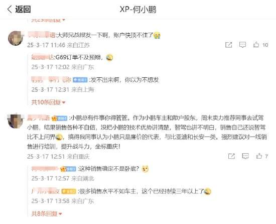 仟茂科技讯 3月17日下午消息,小鹏汽车CEO何小鹏今日在微博发文称,“分享一个好消息,全新小鹏G6上市后首个周末,创造了小鹏汽车单车型单日最高试驾数纪录!” 网友也纷纷在该微博下留言,其中有网友爆料称,自己作为小鹏车主和散户股东,周末卖力推荐同事去试驾小鹏,结果销售各种不自信,没把小鹏的技术优势讲清楚,智驾也讲不明白,销售自己还说智驾比不上问界,搞得同事认为小鹏只是廉价的代表,与比亚迪和长安一类。他喊话何小鹏得管管:“强烈建议对一线销售进行培训,提升战斗力,坐标重庆!” 另外,还有网友喊话何小鹏称“战报发一下”。 刚刚,何小鹏在微博上发布了小鹏MONA 03的战报,他表示,M03连续六个月获得A级纯电轿车销量冠军,并连续两个月成为10-20万级纯电车型的销量冠军,预计下个月小鹏MONA累计交付量突破10万台。 责任编辑:何俊熹 (责任编辑:郭健东 )