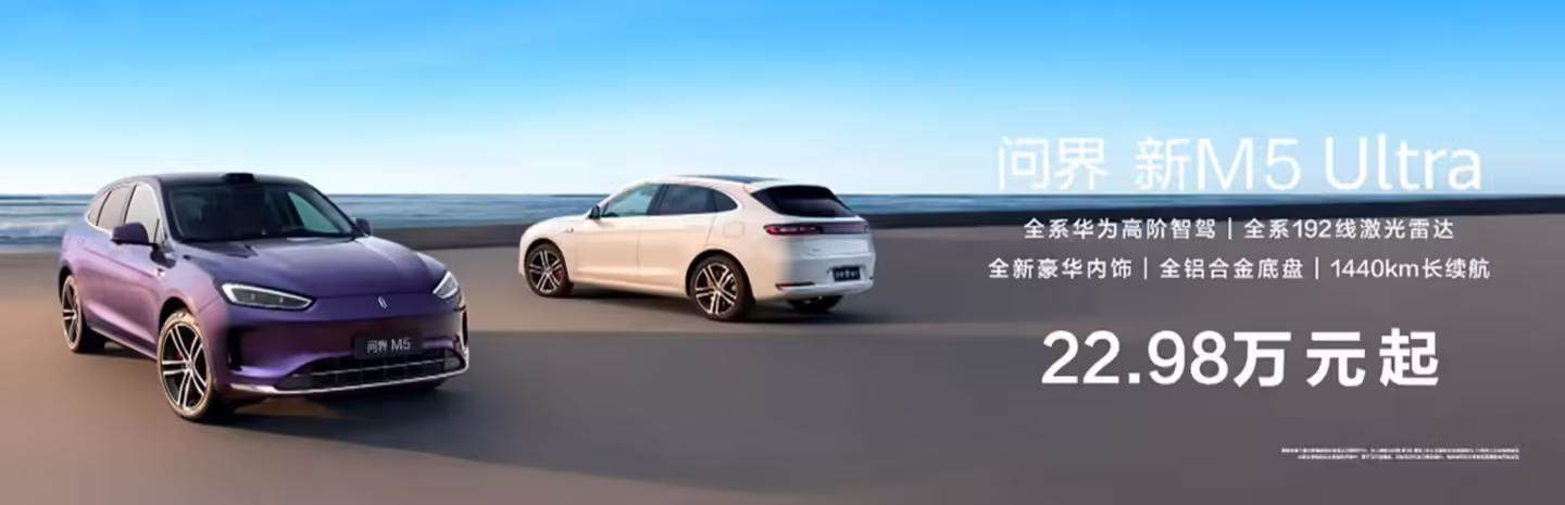 凤凰网科技讯(作者/冯皓钦)3月20日,问界新M5 Ultra在华为Pura先锋盛典及鸿蒙智行新品发布会上正式推出,上市价22.98万元起,4月3日开启规模交付。鸿蒙智行官方宣称,新车是“史上最强”的问界M5。据了解,鸿蒙智行问界新M5 Ultra已于3月1日起开启预订,预售价23.8万元起,2000元订金可抵5000元购车尾款。 据官方介绍,该新款车型带来了五大升级。 配置方面,该车型配备了192线激光雷达、4D毫米波雷达和舒适制动功能,支持AEB全向防碰撞和eAES自动紧急转向,支持边刹边让。 外观方面,该车型新增零度白、幻影紫配色,内饰新增赤茶橘配色,采用怀挡设计和副驾座椅无缝四向腿托。 内饰方面,新M5 Ultra还升级了100W有线快充、双50W无线快充,并采用了双杯托设计、15.6英寸中控屏。 此外,新M5 Ultra还搭载了全铝合金底盘、百公里加速4.3秒,升级了刹车制动,刹车平顺性提升81%。特别的,其泊车功能也迎来提升,新M5 Ultra支持AEB全向防碰撞、eAES自动紧急转向。 (责任编辑:张晓波 )