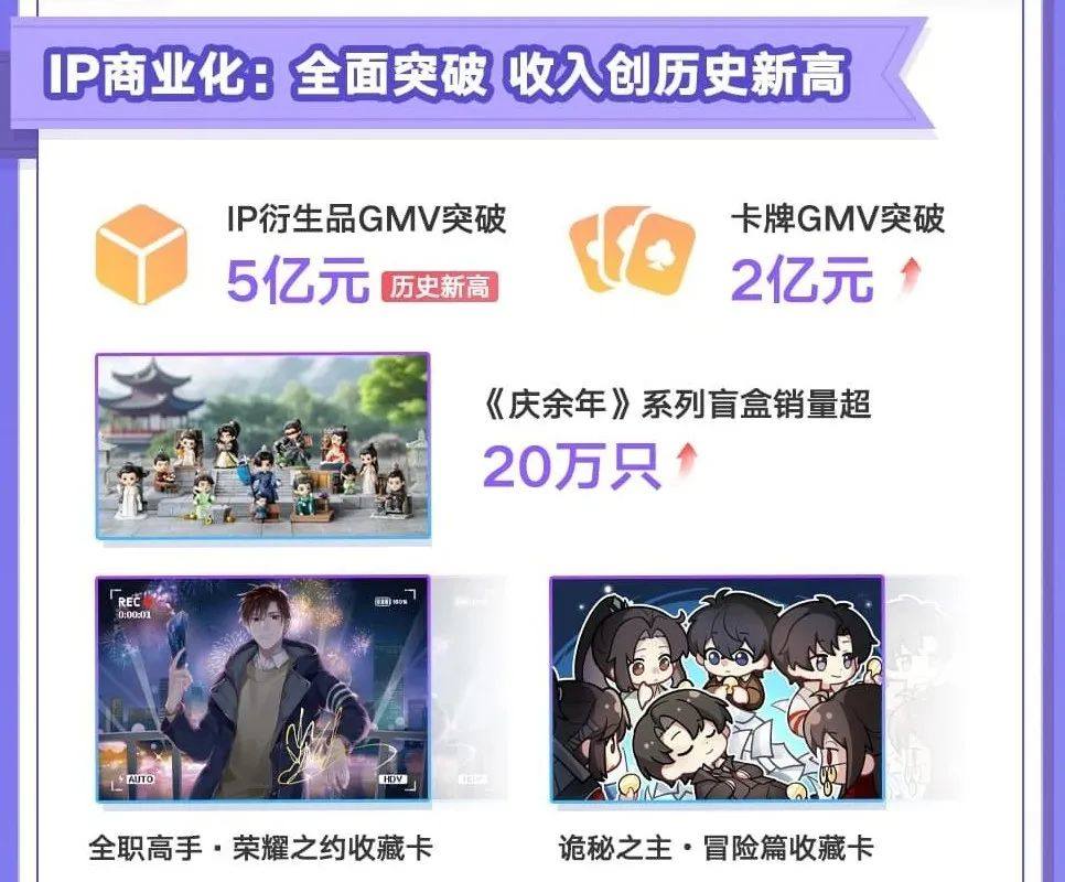 侯晓楠表示,今年阅文将全面升级团队在整个价值链条上的能力,在谷子、卡牌等基础上扩展更多产品品类和内容形态。去年阅文的衍生品 GMV 突破 5 亿元,其中卡牌 GMV 突破 2 亿元。侯晓楠称,2025 年 IP 衍生品业务将有更亮眼的发展。
