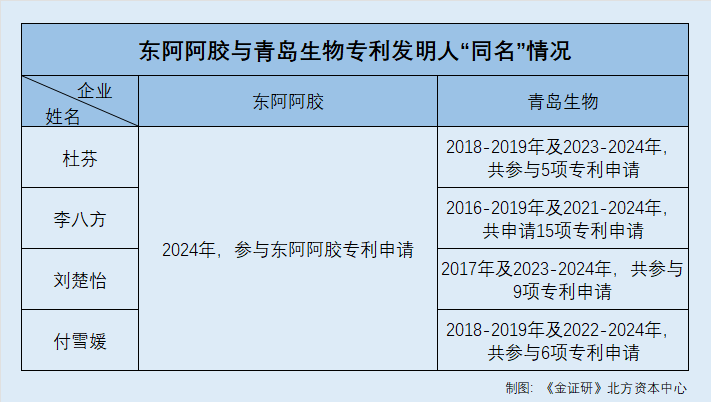 《金证研》北方资本中心 含章*DL&*BR/作者 廉贞 映蔚/风控 在2025年3月17日发布的《2024年社会责任报告》中,东阿阿胶(000423)股份有限公司(以下简称“东阿阿胶”)称,充分调动其管理团队以及业务骨干的主动性和创造性等,探索高管及核心骨干、研发人员等中长期激励的建设,修订限制性股票激励计划。 而关于该次股权激励,可追溯到2024年1月,彼时东阿阿胶发布第一次限制性股权激励计划草案,一年后,2025年1月对激励对象的范围、标的股票数量等作出修订。蹊跷的是,2025年为第一个解除限售期业绩考核对应年度,共设置四项业绩考核条件,其中净资产收益率等两项业绩考核条件或“开倒车”。而回溯东阿阿胶近五年的董事长任职情况,其已然更换了四任董事长,其中现任董事长程杰于2024年10月22日上任。 另一方面,东阿阿胶的专利申请发明人频现“同名”异象,不仅与高校副教授同名,还与第三方企业的多名专利发明人同名。而东阿阿胶专利发明人李新华,系东阿阿胶的副总裁,且拥有管理学学士学位,其任职履历或主要涉及管理工作,却现身东阿阿胶多项专利申请的发明人名单。 一、近五年4次更换董事长,股权激励部分业绩考核或“开倒车” 回溯历史,自2019年起,东阿阿胶的董事长变动频繁,期间已更换了四次董事长。而另一方面,东阿阿胶2024年1月发布第一次限制性股权激励计划,2025年1月对其进行修订。蹊跷的是,2025年为第一个解除限售期业绩考核对应年度,其中净资产收益率等两项业绩考核或“开倒车”。 1.1 现任董事长程杰于2024年10月22日上任,东阿阿胶自2019年起四次更换董事长 据东阿阿胶2024年报,2024年10月22日,白晓松因工作变动原因,申请辞去东阿阿胶第十一届董事会董事长、董事职务,同时一并辞去第十一届董事会战略委员会主任委员职务。辞职后,不再担任东阿阿胶及公司控股子公司任何职务。2024年10月22日起,程杰出任东阿阿胶的董事长。 需要指出的是,自2019年起,东阿阿胶的董事长变动频繁。 据东阿阿胶2018-2024年年报,2015年1月9日起,王春城担任东阿阿胶的董事长,2019年11月11日因工作内容变动原因辞职。 2019年12月9日起,韩跃伟担任东阿阿胶的董事长,2022年1月8日离任。 2022年1月8日,高登锋出任东阿阿胶的董事长,2023年2月20日离任。 2023年2月20日起,白晓松担任东阿阿胶的董事长,2024年10月22日离任。 不难发现,2019-2024年,东阿阿胶更换四任董事长。 需要指出的是,2024年,东阿阿胶发布第一期限制性股票激励计划。 1.2 2024年1月发布第一次限制性股权激励计划次年发布修订稿,激励对象共179人 据东方财富(300059)Choice数据,2024年1月2日晚间,东阿阿胶披露了《第一期限制性股票激励计划(草案》)。2025年1月10日晚间,东阿阿胶披露了《第一期限制性股票激励计划(草案修订稿)》(以下简称“股权激励计划草案修订稿”) 关于本次股权激励履行的程序,2023年12月31日,东阿阿胶董事会、监事会审议通过《关于第一期限制性股票激励计划(草案)及其摘要的议案》《关于第一期限制性股票激励计划实施考核管理办法的议案》《关于第一期限制性股票激励计划管理办法的议案》等议案。 2025年1月10日,东阿阿胶董事会、监事会审议通过《关于第一期限制性股票激励计划(草案修订稿)及其摘要的议案》《关于第一期限制性股票激励计划实施考核管理办法(修订稿)的议案》等议案。 具体来看,本激励计划拟授予不超过124.7209万股限制性股票,占东阿阿胶股本总额64,397.6824万股的0.1937%。 本激励计划拟首次授予的激励对象共计179人,具体包括董事(不含外部董事)、高级管理人员5人、中层管理人员22人、科研骨干与高技能人员90人、业务骨干人员62人及预留部分。 将“目光”转向上述股权激励计划的业绩考核。 1.3 2025年为第一个解除限售期业绩考核对应年度,其中两项业绩考核或“开倒车” 据股权激励计划草案修订稿,本次股权激励计划考核指标分为两个层次,分别为公司层面业绩考核和个人层面绩效考核。东阿阿胶选取净资产收益率、归属母公司股东的净利润增长率、营业利润率作为公司层面的业绩考核指标。 其中,公司层面,本激励计划授予的限制性股票,在2025―2027年的3个会计年度中,分年度进行业绩考核。 第一个解除限售期业绩考核条件为:2025年净资产收益率不低于11.5%,且不低于对标企业75分位水平或不低于同行业平均水平;以2023年为基准,2025年归属母公司股东的净利润复合增长率不低于15%,且不低于对标企业75分位水平或不低于同行业平均水平,且不出现负增长;2025年经济增加值改善值(ΔEVA)大于0;2025年完成集团公司下发的产业链相关任务。 第二个解除限售期业绩考核条件为:2026年净资产收益率不低12%,且不低于对标企业75分位水平或不低于同行业平均水平;以2023年为基准,2026年归属母公司股东的净利润复合增长率不低于15%,且不低于对标企业75分位水平或不低于同行业平均水平,且不出现负增长;2026年经济增加值改善值(ΔEVA)大于0;2026年完成集团公司下发的产业链相关任务。 第三个解除限售期业绩考核条件为:2027年净资产收益率不低于12.5%,且不低于对标企业75分位水平或不低于同行业平均水平;以 2023年为基准,2027年归属母公司股东的净利润复合增长率不低于15%,且不低于对标企业 75 分位水平或不低于同行业平均水平,且不出现负增长;2027年经济增加值改善