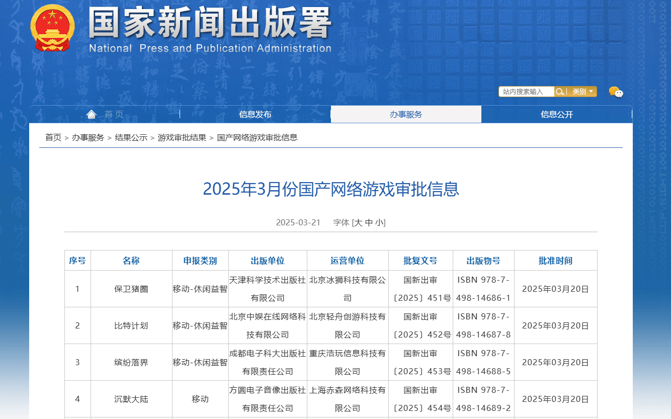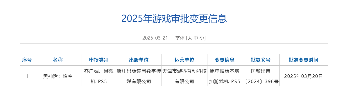 3月21日,国家新闻出版署发布了2025年3月国产网络游戏审批的相关信息。 目前来看,2025年平均每月下发的游戏版号数量相较2024年有所增长。2024年总计1306款国产网络游戏获批,平均到每个月约有109款游戏获批。而2025年的1月至3月,分别下发123款、110款和129款国产网络游戏版号,平均一个月约有121款游戏拿到版号。 值得一提的是,本月一次性下发129款国产网络游戏版号,打破了今年1月份(123款)才刚刚创下的近几年以来国产网络游戏单月最高发行数量的纪录。 图片来源:国家新闻出版署官网 《每日经济新闻》记者统计发现,本次获批的129款移动游戏中有55款属于休闲益智品类,占整体获批游戏的43%。今年,休闲益智品类已经连续3个月获批50款以上,且每次占整体比率都不小于40%。此外,本月申报了客户端的游戏共12款,申报了网页的游戏共2款。 万联证券认为,从2025年1月―2月的版号下发来看,整体行业产品储备持续释放,市场环境趋稳,新游表现可期。 据中国音数协游戏工委发布的《2025年2月中国游戏产业月度报告》数据,2025年2月中国游戏市场收入为279.35亿元,同比增长12.30%。游戏持续吸金,游戏行业热情持续高涨。 腾讯《雪中悍刀行》获批 具体来看3月的获批信息,腾讯的《雪中悍刀行》在3月成功拿到版号,并且同近两年的趋势一样,游戏布局移动端和客户端双端。今年上线的《燕云十六声》《仙侠世界》等国风开放世界游戏也都有双端的布局。 该游戏早在2021年12月就已经首次曝光,但迟迟没有进行测试,很长一段时间内都没有任何新消息。据腾讯游戏之前的介绍,《雪中悍刀行》手游由腾讯四大工作室群的光子工作室群研发,是烽火戏诸侯正版授权的开放世界武侠游戏。 据腾讯游戏,《雪中悍刀行》IP(具有商业价值和可开发性的创意内容)深受读者喜爱,原作在纵横中文网上连载,有9000万次点击,60万条评论。记者还注意到,该IP在2021年播出的改编电视剧播放量也已破亿。 3月获批的游戏中值得关注的还有灵犀互娱的《赤兔与小将军》、恺英网络的《传奇归来》、四三九九的《咕咕三国》、完美世界的《金闪闪骑士团》、巨人网络的《口袋斗蛐蛐》、网易雷火的《山海奇旅》以及三七互娱的《万王起源》。 西山居的老牌经典IP“剑侠世界”在本月终于迎来了新作的确切消息。《剑侠世界4:无限》获批,而目前对于这款游戏西山居还没有放出更多的消息。此外,北京主攻出海和SLG的壳木游戏在本月收获了《长河万卷》一款游戏版号。该厂商旗下游戏《Age of Origins(起源时代)》和《War and Order(战火与秩序)》在中国游戏厂商出海收入排行榜中持续位居前列。而从新作的名字来看,可能和壳木游戏之前的产品存在一定的差别。 5款游戏获得进口版号,《黑神话:悟空》新增PS5版本申报 除了国产网络游戏审批信息,3月21日,国家新闻出版署也更新了3月进口网络游戏审批信息,共5款游戏获得版号。 从2024年10月至2025年2月已经连续5个月下发了进口游戏版号。算上本月的更新,进口游戏版号已经连续6个月下发。从数量上来看,目前三个月共下发了21款进口游戏版号,而去年2月则是一口气下发了30款。总体来说,进口游戏的获批数量有所下降,但审批信息的更新频率则是得到了大幅提升。 本次获批的进口游戏中,值得关注的是恺英网络的《热血江湖:觉醒》。恺英网络3月也是在国产网络游戏和进口网络游戏上都拿到了一款游戏版号。 另外,3月21日还有5条游戏审批变更信息的更新。其中最值得关注的是国产3A游戏《黑神话:悟空》在原申报版本基础上,新增加PS5游戏机的申报,这也就意味着《黑神话:悟空》的PS5国行版正式过审。此前,玩家则需要跨区才能够体验该游戏的PS5版本。 图片来源:国家新闻出版署官网 根据Steam游戏专业数据统计网站Video Game Insights,《黑神话:悟空》的PC版在Steam平台的累计收入已经达到约9.5亿美元,稳居Steam历史收入榜第二位。 据中国音数协游戏工委发布的《2024年全球主机游戏市场调查报告》,《黑神话:悟空》的上线带动了中国主机游戏市场规模、用户规模乃至主机设备销量的大幅增长,促进了中国主机游戏市场发展。 (封面图片来源:每日经济新闻 文多 摄) 每日经济新闻 (责任编辑:张晓波 )