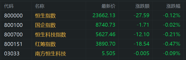 格隆汇3月24日|港股上午盘三大指数呈现窄幅震荡行情,盘中指数反复转涨,继连续2日大跌后,市场似有止跌回稳之势。截止午盘,恒生指数、国企指数分别下跌0.12%及0.02%,恒生科技指数跌0.21%。 盘面上,大型科技股涨跌各异,小米涨1.65%,百度、京东、阿里巴巴飘红,快手跌3.2%,美团跌近3%,腾讯小幅下跌;有色金属股全线上涨,铜价回升至1万美元关口,铜业股涨幅明显,其中,洛阳钼业(603993)大涨超9%领先,江西铜业(600362)涨5.5%,紫金矿业(601899)、中国铝业(601600)齐涨;2025年全国家电消费季启动,家电股走强,TCL电子大涨超9%表现较佳,港口及海运股、煤炭股、航空股、婴童概念股多数上涨。 另一方面,教育股跌幅明显,在线教育龙头新东方跌近4%,建材水泥股、重型基建股、电信股、中资券商股、濠赌股、半导体股普遍表现弱势。(格隆汇) (责任编辑:宋政 HN002)
