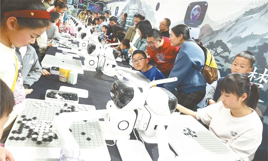 3月23日,浙江杭州,“2025环梦AI智能机器人科普展” 现场,民众与下棋机器人对弈。该展览分设智能科技体验、科技竞赛、AI机器人表演及互动体验等区块,展出近百款智能机器人。连日来,“机器人热”带动杭州相关展览、博物馆等人气走高,民众近距离感受前沿科技。 中新社发 黄彦君/摄 (责任编辑:董萍萍 )