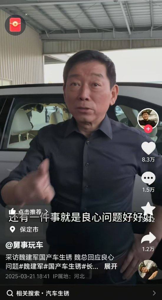 仟茂科技讯 3月24日上午消息,近日,抖音博主“舅事玩车”在上周末向长城汽车董事长魏建军提问,如何看某些国产车品牌生锈的问题。魏建军回应表示,大家还是要看更长期一些。他认为生锈不是一个工艺问题,可能是一个设计问题,还有一件事就是良心问题。 魏建军此前曾表示,包括称汽车“价格战”导致车企“光出不进”,降低产品质量;智能驾驶不是一场秀,实践出真知。魏建军在3月20日发布视频预热第二代Hi4技术大会暨二代哈弗枭龙MAX预售发布会称,关于“长城技术好,不会讲,大家感受不深”也挺憋屈的,长城人都不会讲,所以这次就亲自出来讲一讲。(罗宁) 责任编辑:尉旖涵 (责任编辑:张晓波 )