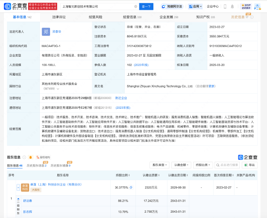 仟茂科技讯 3月24日上午消息,企查查APP显示,近日,上海智元新创技术有限公司注册资本增加至8045万余元,法定代表人由舒远春变更为邓泰华,同时多位高管发生变更。企查查信息显示,该公司成立于2023年2月,由桑蓬(上海)科技合伙企业(有限合伙)担任大股东,持股超30%,后者由彭志辉(稚晖君)持股13.79%。(罗宁) 责任编辑:尉旖涵 (责任编辑:张晓波 )