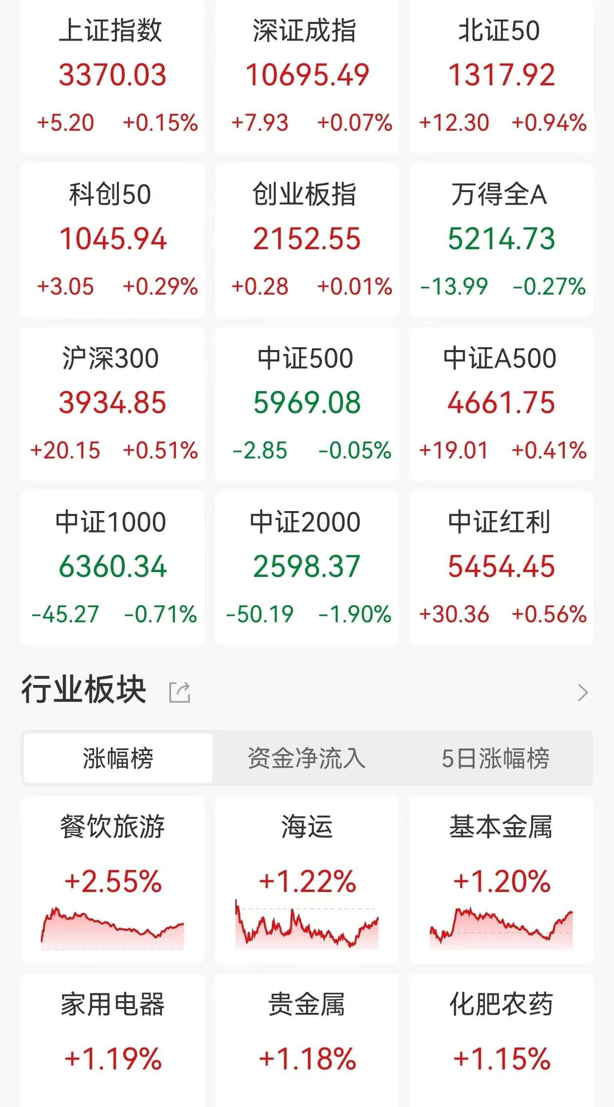 格隆汇3月24日|A股主要指数今日继续下挫,尾盘拉升转涨;截至收盘,沪指涨0.15%报3370点,深证成指涨0.07%,创业板指涨0.01%。全天成交1.47万亿元,较前一交易日缩量1053亿元,全市场超3800股下跌。 盘面上,微盘股集体重挫,建艺股份等多股跌停;脑机接口板块走弱,创新医疗跌停;网络安全板块普跌,国华网安逼近跌停;房地产服务板块走低,阳光股份逼近跌停;通信服务、新型工业化及发电机概念等跌幅居前。另外,旅游酒店板块逆市走高,天府文旅、峨眉山A等多股涨停;海工装备板块走强,亚星锚链涨停;化肥板块拉升,湖北宜化涨停;保险、钛白粉及数字阅读等板块涨幅居前。(格隆汇) (责任编辑:宋政 HN002)