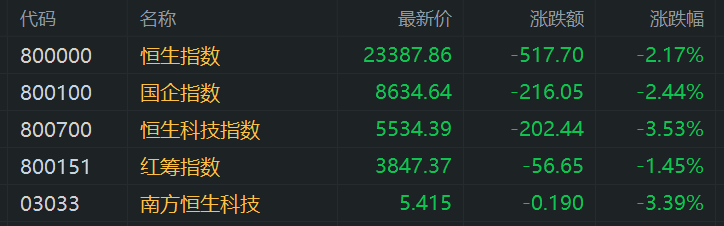 格隆汇3月25日|港股上午盘三大指数大幅下挫,恒生科技指数大跌3.53%表现最差,恒生指数、国企指数分别下跌2.17%及2.44%,恒指更是跌超500点,未能延续昨日午后反弹行情,市场情绪表现低落。 盘面上,作为市场风向标的大型科技股集体下跌,配售425亿港元小米大跌超5%,美团跌超4%,快手、阿里巴巴跌超3%,京东跌2.8%,腾讯、网易跌超1.5%以上;两大利空夹击!DeepSeek概念股、AI应用、AI医疗跌幅明显,微盟集团跌近6%,医渡科技、微创机器人、固生堂均走低;消息称马来西亚拟收紧芯片监管,半导体股表现低迷,汽车股、苹果概念股、水务股、教育股、电信股、钢铁股、重型机械股等齐跌。 另一方面,6家航空公司2月客座率均超过80%,航空股逆势走高,中国国航(601111)盘初一度涨至6%,南航、东航皆有涨幅,风电股、啤酒股、黄金股部分表现活跃。(格隆汇) (责任编辑:宋政 HN002)