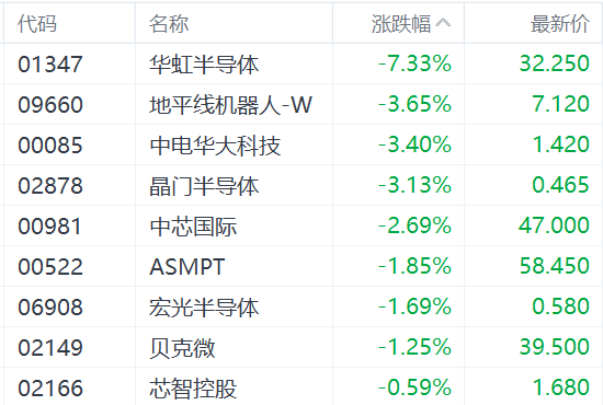 格隆汇3月25日|华虹半导体跌超7%,中电华大科技、晶门半导体跌超3%,中芯国际跌超2%,ASMPT跌近2%。