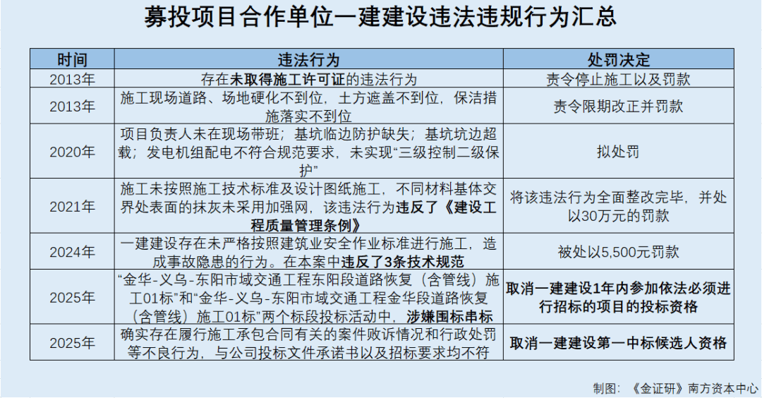 《金证研》南方资本中心 修远BR/作者 西洲 映蔚/风控 2025年3月19日,河北旭辉电气股份有限公司(以下简称“旭辉电气”)披露的审阅报告显示,2024年实现营收2.37亿元,同比增长-3.13%;实现净利润4,849.34万元,同比增长6.13%。 冲击北交所背后,2024年5月,旭辉电气发布公告称,其拟与石家庄一建建设集团有限公司(以下简称“一建建设”)签订总承包合同。同月,一建建设因存在不良行为被其他招标方取消第一中标候选人资格。而一建建设不仅历史上存在多次未取得施工许可证而被责令停止施工,其还曾因涉嫌围标串标被取消1年内参加依法必须进行招标的项目的投标资格。关于该募投项目的问题尚未结束,其中的建筑面积或与环评报告存“出入”,信息披露现疑云。且环评报告显示,该项目的生产车间中或有多层系生产预留区,在考虑极值的情况下,经测算的容积率或低于地块拍卖约定的下限。 一、募投项目总承包单位因不良行为被招标方取消中标资格,曾多次因未取得施工许可被责令停工 募投项目总承包方影响着施工质量,企业对此合作伙伴的选择或应当慎重。 值得注意的是,旭辉电气一项募投项目总承包方施工单位,历史上曾多次因未取得施工许可被责令停工。而在旭辉电气发布拟签订合同的当月,该施工单位被其他招标方取消第一中标候选资格。 1.1 2024年5月发布公告称拟与一建建设签署募投项目总承包合同,价款逾七千万元 据旭辉电气2024年5月21日发布的《河北旭辉电气股份有限公司关于拟签订建设工程施工合同的公告》,旭辉电气拟与一建建设签署《建设工程施工合同》,合同价款为7,627.4万元。 具体而言,工程名称为智能电力装备智慧工厂建设项目总承包工程,工程地点为石家庄高新区黄山南街以东,裕华东路以北。同时,旭辉电气表示,本合同的签订旭辉电气的业务发展具有重大战略意义,将对旭辉电气的经营业绩、市场拓展及品牌效应产生积极影响。合同的履行符合其战略发展方向,有利于增强旭辉电气核心竞争力。 据签署于2023年12月18日的《河北旭辉电气股份有限公司招股说明书(申报稿)》(以下简称“2023年12月18日签署的招股书”),智能电力装备智慧工厂建设项目(以下简称“智慧工厂项目”)系旭辉电气本次上市的募投项目,拟使用募集资金2.37亿元。 此外,据一建建设官网,截至查询日2025年3月21日,一建建设在“钢结构工程”中,公示了“智能电力装备智慧工厂建设项目总承包”的案例。 然而,历史上,一建建设曾存在未取得施工许可证建设的情况。 1.2 曾多次因未取得施工许可证被责令停止施工,2024年因未严格按照建筑业安全作业标准进行施工被罚款 据石家庄市住房和城乡建设局发布的《2013年违法建设案件行政处罚公示一览表》,一建建设在“慢城住宅小区6#、7#、8#住宅楼工程”项目、“阿尔卡迪亚三期22#楼主体工程”项目、“鑫界王府(1#-2#)楼工程”等项目中,均存在未取得施工许可证的违法行为,被责令停止施工以及罚款。 可见,历史上,一建建设曾多次存在未取得施工许可证被责令停止施工的情形。 此后,自2020年起,一建建设频被处罚。 据天津经济技术开发区管理委员会发布的《关于开展暑期及雨季建设工程质量安全和建筑市场专项检查暨经开区2020年第二次建设工程“双随机、一公开”检查情况的通报》,建管中心近期开展了暑期及雨季建设工程质量安全和建筑市场专项检查暨经开区2020年度第二次建设工程“双随机、一公开”执法检查活动。 在现代产业区东扩区污水总管与污水泵站接入口工程中,施工单位一建建设(拟处罚),在深基坑施工期间,项目负责人未在现场带班;基坑临边防护缺失;基坑坑边超载;发电机组配电不符合规范要求,未实现“三级控制二级保护”。 据芦住建〔2021〕第01号文件,芦山县住房和城乡建设局已依法查明,一建建设因汉嘉・罗纯华府项目9栋一单元外墙施工未按照施工技术标准及设计图纸施工,不同材料基体交界处表面的抹灰未采用加强网,该违法行为违反了《建设工程质量管理条例》第六十四条的规定,被要求立即将该违法行为全面整改完毕,并被处以30万元的罚款。 时间来到2024年。一建建设因在项目建设中涉嫌违反多项技术规范而被处罚。 据京建法罚(市)字[2024]第010198号文件,一建建设是位于石景山区苹果园综合交通枢纽的苹果园综合交通枢纽土地一级开发项目1604-648、649-1、649-2、650-1、650-2地块项目(1#楼等4项)的电气工程专业分包单位。 2024年5月17日一建建设被现场检查时发现,2#楼东区16层一建建设使用的一台开关箱金属箱门与金属箱体未做电气连接;2#楼东区16层一建建设使用的一台手持电锤的负荷线有3处接头;2#楼东区15层一建建设使用的一台移动式开关箱放置在地面上,未装设在坚固、稳定的支架上。上述行为均不符合《施工现场临时用电安全技术规范》的规定。 基于上述一建建设存在未严格按照建筑业安全作业标准进行施工,造成事故隐患的行为。一建建设在本案中违反了3条技术规范,被处以5,500元罚款。 1.3 2021年因串标,被取消一年内参加依法必须进行的招标项目的投标资格 据浙发改法字〔2021〕6号文件,一建建设在参加“金华-义乌-东阳市域交通工程东阳段道路恢复(含管线)施工01标”和“金华-义乌-东阳市域交通工程金华段道路恢复(含管线)施工01标”两个标段投标活动时,涉嫌