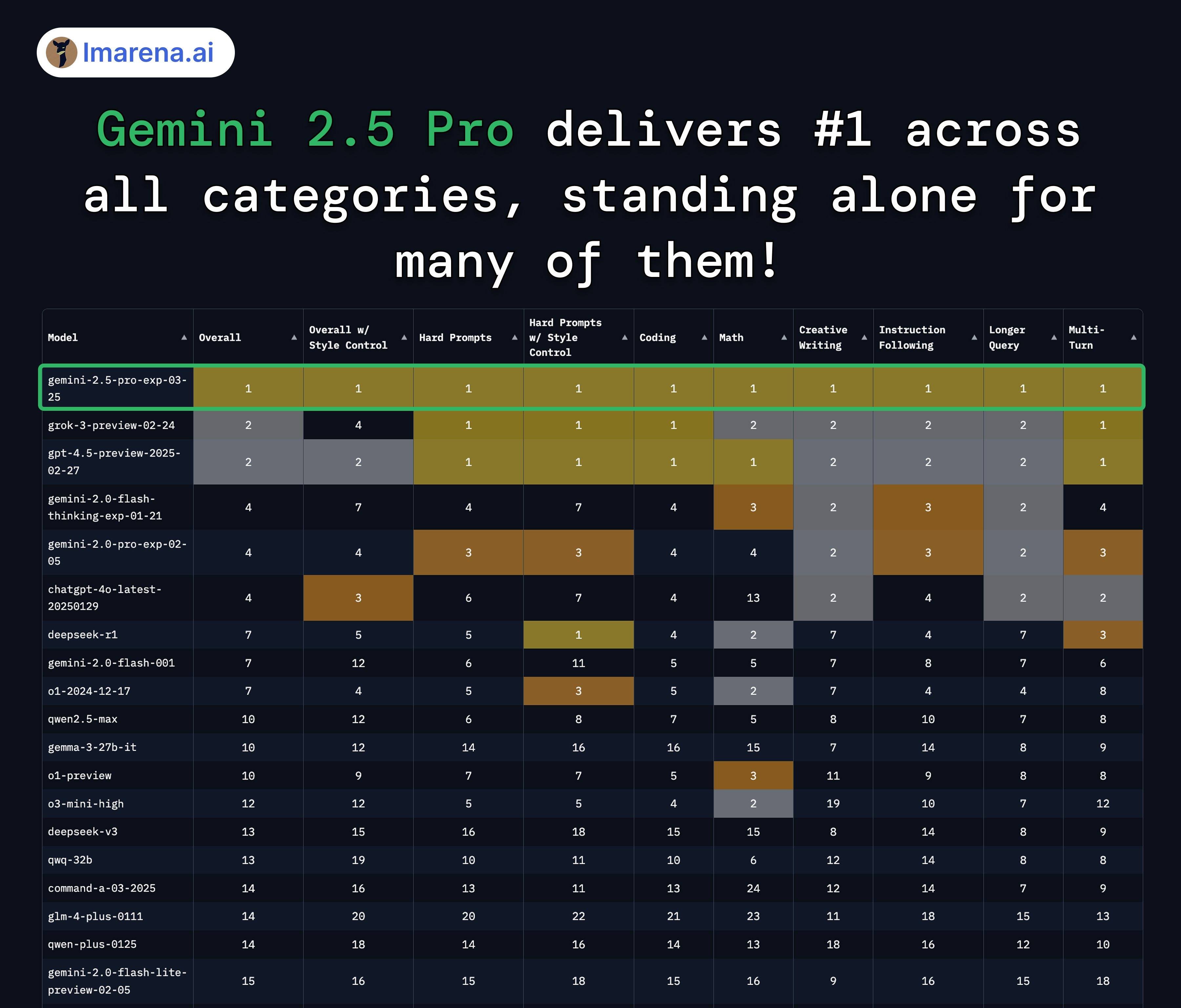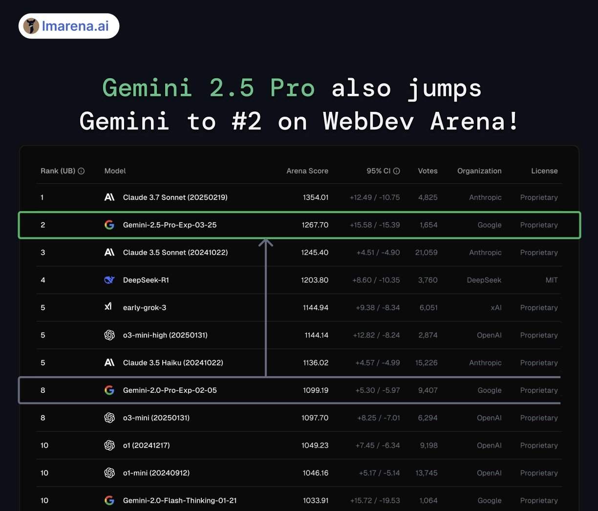 图片来源:谷歌博客 当地时间3月25日,谷歌正式揭开其下一代AI模型系列――Gemini 2.5的神秘面纱,宣称这是其迄今为止“最智能的AI模型”。 首个发布的版本被命名为Gemini 2.5 Pro Experimental(以下简称“Gemini 2.5 Pro”)。谷歌表示,Gemini 2.5 Pro支持100万个token的上下文窗口,这意味着AI模型能一次性处理相当于两本《红楼梦》字数的文本量。 该模型一经发布,便在各大基准测试上全面“屠榜”,在所有测试中都稳居第一名的位置,包括常见的编程、数学和科学基准测试。 谷歌Deepmind首席技术官Koray Kavukcuoglu在博客中写道:“现在,通过Gemini 2.5,我们结合了显著增强的基础模型和改进后的后续训练,实现了全新的性能水平。未来,我们将把这种思维能力直接构建到我们所有的模型中,使其能够处理更复杂的问题,并支持更强大、更具情境感知能力的智能体。” 《每日经济新闻》记者(以下简称“每经记者”)也在第一时间对Gemini 2.5 Pro进行了测试,测试包括数学、火星登陆模拟测试、网页开发和小游戏制作。 测试结果显示,该模型在科学类问题和编程方面实力强大,用户只要会打字,就能进行编程。而且,生成速度极快,质量良好。与每经记者之前测试的多款大模型相比,Gemini 2.5 Pro在测试过程中几乎没有出现bug。不过,在网页设计审美和玩家体验等方面,该模型还有提升的空间。 Gemini 2.5 Pro上线即“屠榜”当地时间3月25日,谷歌宣布推出全新AI模型系列――Gemini 2.5。谷歌首席科学家Jeff Dean表示,Gemini 2.5是该公司最智能的模型,具有令人印象深刻的高级推理和编码能力。 Gemini 2.5系列属于“思考模型”,这意味着该模型在生成最终回应之前,能够进行内部的“思考”或推理过程。谷歌表示,这种能力旨在显著提升模型的性能表现和答案的准确性,是谷歌在强化学习、思维链提示技术领域长期深耕,以及对早期 “思考” 模型(如 Gemini 2.0 Flash Thinking )持续探索的重要成果。 Gemini 2.5 Pro是这一系列模型的首发产品。谷歌表示,Gemini 2.5 Pro支持100万个token的上下文窗口,这意味着它一次性能处理相当于两本《红楼梦》字数的文本量。并且,谷歌承诺,Gemini 2.5 Pro很快将支持两倍的上下文窗口(即200万个token)。 目前,Gemini 2.5 Pro已在Google AI Studio和Gemini应用中推出,向Gemini Advanced用户开放,并将很快在Vertex AI上推出。 一经发布,Gemini 2.5 Pro便以出色的性能吸引了外界的广泛关注。谷歌在博客中强调,Gemini 2.5 Pro在一系列行业基准测试中达到了“最先进水平”(state-of-the-art),包括常见的编程、数学和科学基准测试。 在“人类的最后考试”测试中,它获得了18.8%的最高分数,这是目前为止所有未使用(外接工具)的大模型中最好的成绩。“人类最后的考试”是一个由全球近千名专家共同设计的多模态基准测试,旨在评估大型语言模型的能力极限。该测试包含3000道涵盖数学、人文学科和自然科学等多个领域的前沿问题。 “人类的最后考试”测试 图片来源:谷歌官网 在专注于人类理解的大模型竞技场测试中,Gemini 2.5 Pro也以创纪录的优势拔得头筹,创下了历史最大的分数跨越,比Grok-3和GPT-4.5高出40多分。 图片来源:大模型竞技场 具体来看,在代号为“nebula”的测试中,Gemini 2.5 Pro横扫所有类别,夺得第一,独揽数学、创意写作、指令遵循、长查询和多轮对话这五大领域的冠军; 图片来源:X平台截图 在人类偏好测试中,Gemini 2.5 Pro同样是在所有类别中问鼎榜首,只在困难提示和编码领域与Grok-3/GPT-4.5拿到并列冠军。 人类偏好测试 图片来源:大模型竞技场 在网页开发领域,Gemini 2.5 Pro也是脱颖而出,在WebDev Arena上排名第二,它较上一代Gemini有了巨大的飞跃,超越了Claude 3.5 Sonnet,是第一款能与Claude抗衡的模型,但仍低于Claude 3.7 Sonnet。 WebDev Arena测试 图片来源:大模型竞技场 在Vision Arena(视觉竞技场)测试中,作为多模态模型的Gemini 2.5 Pro也处于领先的位置。 Vision Arena测试 图片来源:大模型竞技场 记者实测:编程方面实力强大,但审美及玩家体验待提升每经记者第一时间对Gemini 2.5 Pro进行了测试,测试包括数学、火星登陆模拟测试、网页开发和小游戏制作。 数学问题 每经记者抛出的是一个博士资格考试的群论数学问题:有多少个147阶的非同构群? Gemini 2.5 Pro在数量和具体的非同构群上都给出了完美的解答。值得一提的是,此前记者也用这一问题对其他大模型进行了测试,Grok3、o3-mini和DeepSeek-R1都或多或少出现了错误,不是数量没找对,就是具体的非同构群出错。 火星登陆模拟 接下来,每经记者测试的是Gemini 2.5 Pro在数学和物理方面的综合能力。测试选择的是马斯克的经典问题:绘制一个登陆火星并返回的火箭轨道图。 Gemini 2.5 Pro给出了一个完成度超高的动态图像,包含任务天数、具体轨道示意图等要素。并且,它还称,这只是一个简单版本,如果允许它接入天体数据库的话,它还可以制作一个更准确的版本出来。 网页开发 在前端设计方面,每经记者要求它设计一个有互动性的世界风光介绍网站。 Gemini 2.5 Pro输出了一个完整的网站,并且带有景点介绍和互动地图探索相关功能。但是,在具体细节上,它犯了很多小错误,例如,景点介绍的图片不仅单一,而且还都是不相关的内容。此外,整体网页设计的色调也不甚美观。 小游戏制作 最后,每经记者让Gemini 2.5 Pro制作一个类似于flappy bird的小游戏,标准是卡通画风,背景要随游玩时间变