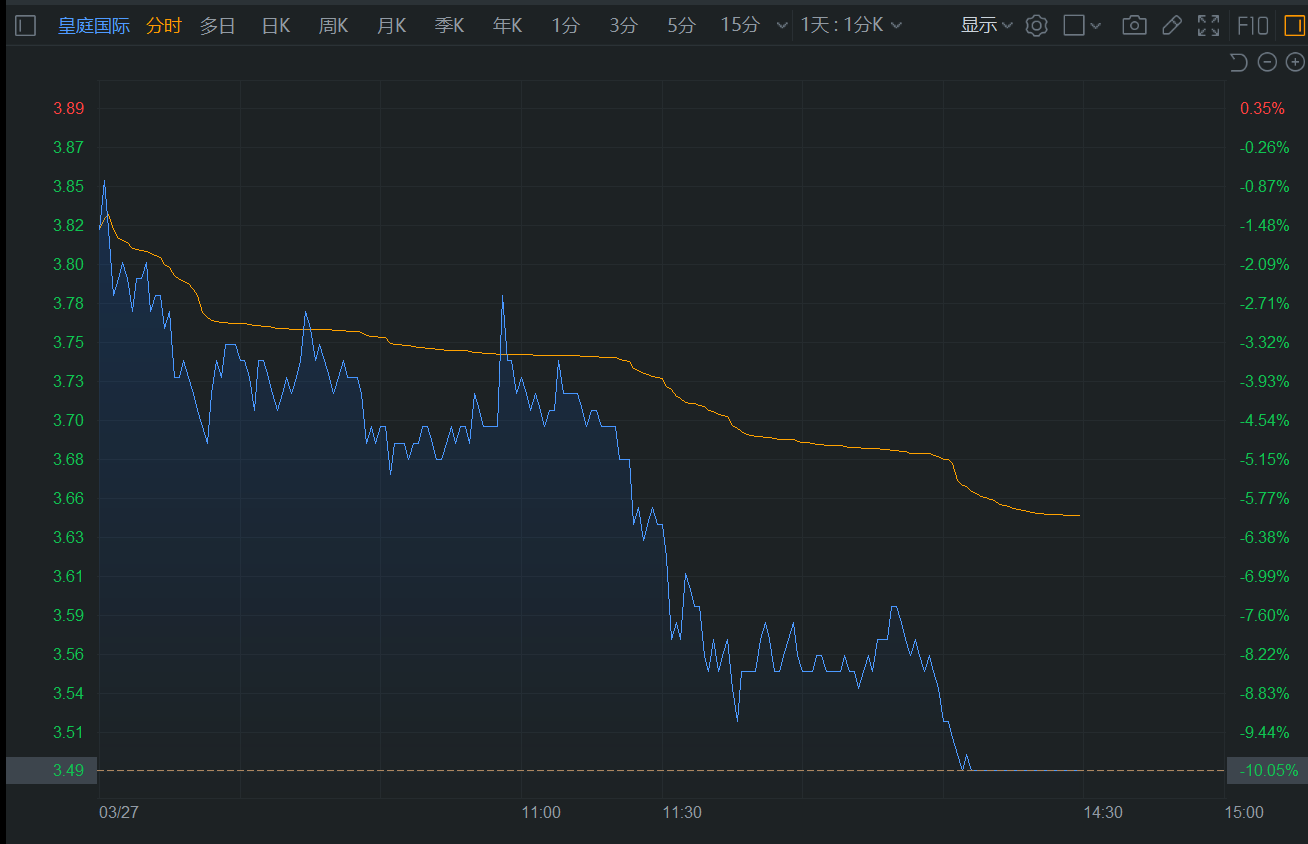 格隆汇3月27日|皇庭国际(000056.SZ)午后封跌停板,报3.49元,总市值42.23亿元。消息上,公司日前公告,2025年1月20日至21日,淘宝网司法拍卖网络平台对皇庭国际5%以上股东深圳市皇庭产业控股有限公司所持1000万A股公司股份进行拍卖,最终由徐秀龙竞买成功。此次拍卖导致皇庭产控股数由1.91亿股减少至1.81亿股,持股比例由15.79%降至14.97%。(格隆汇) (责任编辑:宋政 HN002)