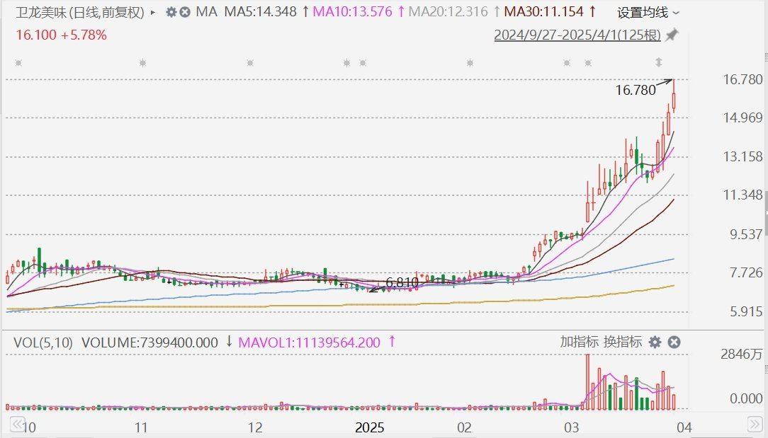 格隆汇4月1日|延续近期强势,卫龙美味(9985.HK)今日盘中继续上涨,一度拉升涨超10%至16.78港元,为连续第五日上涨,股价亦连续3日创出历史新高,市值逼近400亿港元。该股年内已累涨133%。 公司3月27日公布财报显示,2024年收入同比增长28.6%至62.66亿元;净利润同比增长21.4%至10.68亿元,每股基本盈利约0.46元。董事会建议派发2024年末期股息每股0.11元,同时董事会建议派发特别股息每股0.18元,共计特别股息约4.23亿元。 从业绩来看,2024年,卫龙的蔬菜品类迎来大爆发。近年来,魔芋爽成为现象级单品,营收与辣条旗鼓相当,成功实现“双轮驱动”增长,这标志着卫龙正式进入多品类协同发展的新阶段。 光大证券(601788)发布业绩点评称,卫龙美味2024年以来各项改革措施逐步落地,公司业绩重回快速增长。2025年公司将延续2024年的性价比策略和推广措施(包括大学线下促销、增加“魔芋爽”陈列、投放梯媒广告等),在较高的员工士气下,公司收入有望继续快速增长。光大证券还称,辣味食品天生具备成瘾性,用户粘性强,增长较为稳定,公司作为龙头有望受益于行业增长,维持“增持”评级。 (责任编辑:宋政 HN002)
