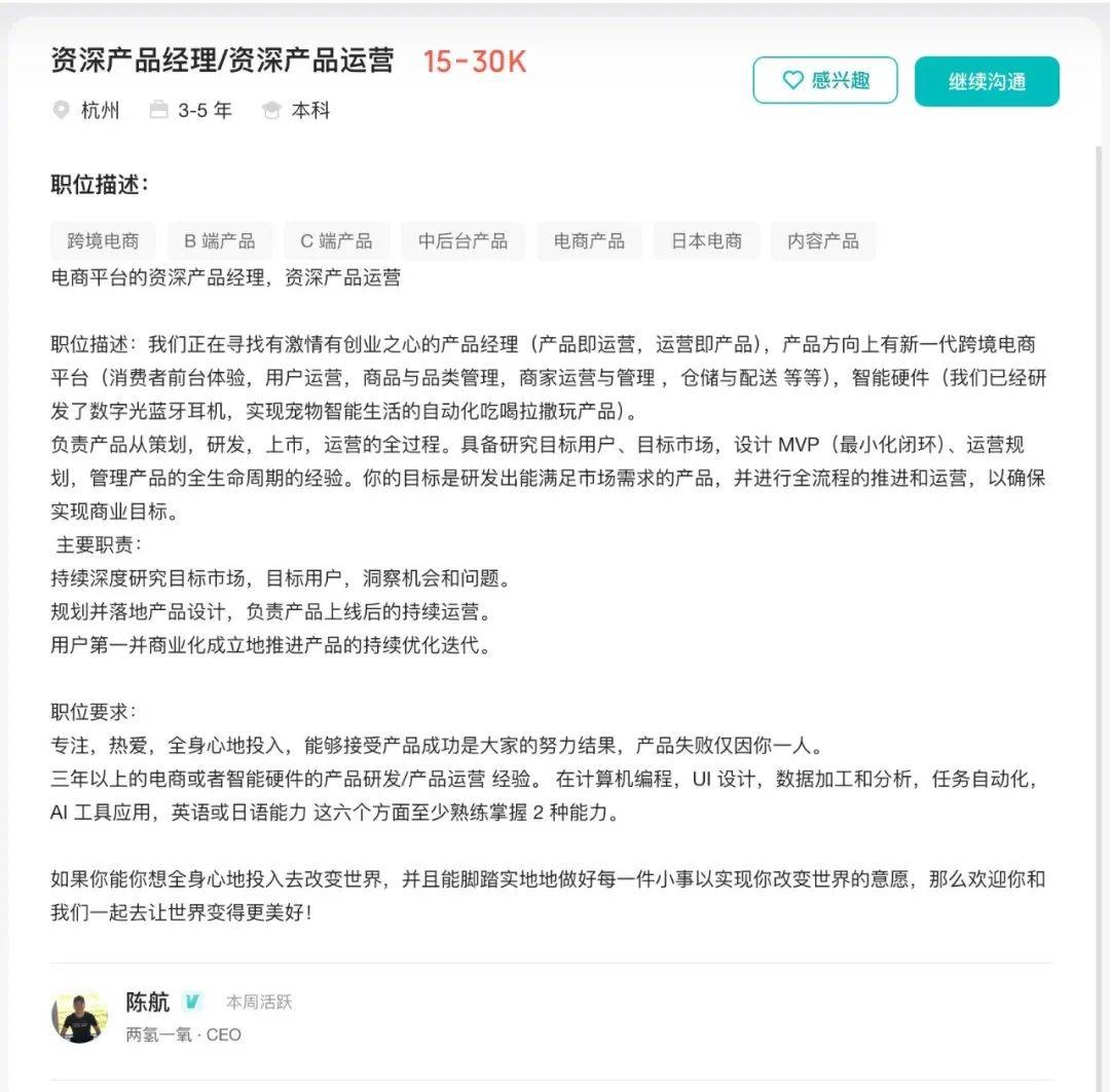 钉钉始终是集团的,只是集团的战略会变化。 作者|薛星星 编辑|蒋浇 封面|两氢一氧 花名“无招”的陈航先生是阿里历史上少有的三进公司的高管。 昨日(3 月 31 日)晚间,阿里巴巴对外宣布,阿里集团拟收购陈航(无招)创办的两氢一氧公司的投资人股份,交易完成后,陈航(无招)将出任阿里集团钉钉 CEO。阿里巴巴对山上称,钉钉现任 CEO 叶军(不穷)将回到阿里巴巴集团,另有任用。 这个消息来得有些突然。收购尚未正式完成,此前也没有任何铺垫。招聘网站显示,陈航的创业公司两氢一氧目前还在招聘,开放岗位达 50 个之多。 其中有 5 个岗位都是由陈航亲自招聘,包括商品供应链总监、资深产品经理/运营乃至交互视觉设计专家等。招聘网站显示,陈航“本周活跃”,这意味着他至少在过去一周内仍在面试应聘者。 两氢一氧的招聘信息 互联网上有不少对这次陈航回归阿里的猜测。人们的普遍看法是在当下阿里全面倒向 AI 的战略背景下,钉钉的重要性被提高。用集团 CEO 吴泳铭在财报电话会上的话来说,“钉钉是我们最重要的、面向 ToB 领域的 AI 应用。” 吴泳铭把 2 月份那场财报电话会硬生生地开成了一场阿里集团 AI 战略发布会。他在那场发布会中提及了许多阿里内部业务与 AI 结合的明显机会,包括淘宝、夸克乃至高德,这些应用都具备很高的潜力。 过去一段时间,夸克已经成为阿里巴巴 ToC 领域优先级最高的业务之一。它日前更新的最新版本被阿里巴巴称之为“AI 旗舰应用”,夸克原本的负责人吴嘉由阿里智能信息事业群总裁升任集团副总裁、夸克 CEO,直接向吴泳铭汇报。 但在 ToB 领域,吴泳铭只举例了钉钉。“集团另一块非常重要的 ToB 资产是钉钉。在我们看来,未来在企业端会有非常多用 AI 重塑企业内协作、协同的场景和机会。”吴泳铭说。 这也不是吴泳铭第一次对外表态钉钉之于阿里的战略意义。2023 年 11 月,他第一次以集团 CEO 的身份亮相阿里巴巴财报电话会时,就将钉钉与 1688、闲鱼、夸克一起列为阿里巴巴第一批战略级创新任务。“钉钉因为 AI 时代的到来,将获得前所未有的想象力。” 在集团管理层如此看重钉钉价值的表态下,钉钉更需要的或许是更懂产品、也更能打仗的创始人,而非守成的老将,陈航的回归似乎也是理所当然。 陈航已经很久都没有出现在公众视野中了。他上一次被媒体们追踪报道还是 2023 年阿里巴巴改革大幕刚刚拉开时。马云回归,逍遥子卸任,阿里开始成立以来的最大组织变革。吴泳铭代表着阿里创始团队开始出任集团 CEO,少壮派上位,AI 开始成为公司的战略目标。 那是一个看起来似乎比现在都更适合陈航回归的节点。云钉一体战略早已被舍弃,钉钉也正式回归到集团管理,就连新任管理层也与他交情颇深――吴泳铭对于无招有知遇之恩。当年是他将陈航从日本叫回国,加入淘宝。更早之前,陈航能够进入阿里实习,自述也是沾了吴泳铭的光。陈航从阿里离职创业,也是吴泳铭投的钱。 但 2023 年的无招没有选择回来。他除了年中出席一次钉钉的发布会之外再无与钉钉相关的动作。那年 8 月的钉钉生态大会上,陈航作为神秘嘉宾亮相。 那是他离职之后首次出现在钉钉发布会上,但他的演讲听起来似乎有些刺耳。那时钉钉已经开始全面接入大模型,也开始商业化进程。但陈航的发言是:钉钉要不忘初心,服务好海量中小微企业。他说,现在创业企业仍然面临大量问题未得到解决。 这场发布会召开一周后,市场传出阿里正在与陈航谈判,试图收购两氢一氧,让陈航重回阿里。但当时阿里副总裁颜乔对外否认,称“假的,捕风捉影。”更早之前,外界首次流传陈航在卸任钉钉 CEO 后即将离职创业时,阿里同样对外否认,称只是新机制下的一种创新。 年底,陈航接受了腾讯深网的专访。他在那篇专访中的发言看上去有些无奈,称“当年集团要云钉一体化,我只能离开。”腾讯深网在报道中称,陈航当时未否认集团让他回归的传言。陈航解释称,自己的创业刚刚开始,“这条路你已经走出去了,就得继续往前走。” 他引用了一个有形阿里和无形阿里这么一个有些形而上的概念,称“有形阿里是在一个组织架构下做一个业务,而无形阿里本质上是一个创业者对梦想的坚持。实际上我们继承了阿里当年的使命,让天下没有难做的生意,这是我内心坚信的东西。” 两氢一氧团队合影 阿里历史上有过不少这样抱着类似于陈航这种信念的管理者,但似乎少有像陈航这样从现实路径到内心写照上都与阿里巴巴绑定如此之深的人。比如他的两次从头再来都专门选择了以阿里巴巴当年的湖畔花园作为起点,当年带着来往的人做钉钉是在湖畔花园,从阿里离开做两氢一氧也是在湖畔花园。 他可能也是阿里体系中少有的对外界展示出浓厚个人性格的业务创始人。更早之前他带领的钉钉被人称作是“疯人院”,他自述自己做钉钉时至少拜访过 1200 家企业。 媒体报道中总要不厌其烦地引用他当年是如何痴迷产品细节、如何精力旺盛地与使用钉钉的企业交流,包括为早餐摊的老板演示钉钉的视频会议功能。多年前他接受浙江经视的专访,聊着聊着就坐到主持人旁边,现场打开钉钉为主持人演示,直接拉一个语音会或者展示私密聊天功能。视频中可以清楚地看到他的钉钉界面,未读消息 99+。 不同场合下,陈航都多次表示,他喜欢电视剧《士兵突击》以及电
