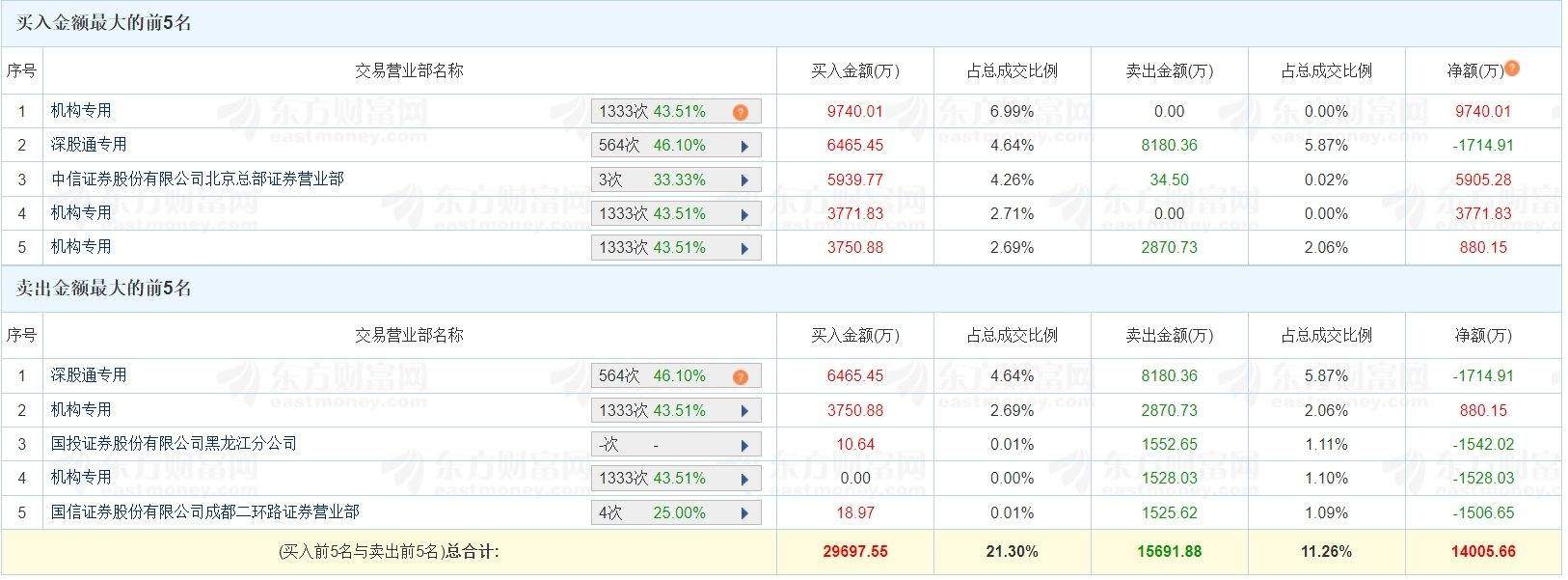 格隆汇4月1日|科伦药业(002422)(002422.SZ)今日涨停,股价创历史新高,换手率3.1%,成交额13.94亿元。龙虎榜数据显示,四家机构买入1.73亿元,卖出4398.76万元,净买入1.29亿元;游资“呼家楼”位列买三席位,买入5905.28万元。上榜席位全天买入2.97亿元,卖出1.57亿元,合计净买入1.4亿元。(格隆汇) (责任编辑:宋政 HN002)