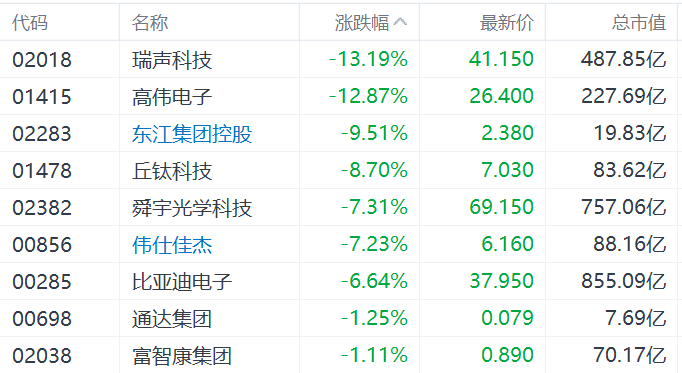 格隆汇4月3日|港股市场苹果概念股全线下跌,其中,瑞声科技跌超13%,高伟电子跌近13%,东江集团控股跌超9%,丘钛科技跌近9%,舜宇跌超7%,比亚迪(002594)电子跌超6%。 消息面上,美国总统特朗普宣布向所有进口商品征收10%的全面关税,对其他被认为在贸易活动中表现不佳的国家,则征收更高的税率,其中,中国被开征34%关税,对欧盟征收20%,向柬埔寨开征49%关税,越南被征46%,泰国征收36%,向印尼征收32%,向韩国开征25%,马来西亚加征24%,日本被征24%,英国征收10%。 韦德布什全球技术研究主管Dan Ives认为,特朗普周三推出的大规模关税措施对市场的影响比预期的要糟糕。“我们将这一系列关税定性为‘比市场担心的最坏情况还要糟糕’。”他补充说,由于关税的影响,科技股将面临“重大”压力,投资者对需求破坏、供应链感到焦虑。对于英伟达和其他与供应链有重大关系的芯片企业来说,担心的将是定价和利润率受到影响,以及这对未来全球供应链意味着什么。苹果也值得关注,因为该公司大部分的iPhone生产都是在外国进行的。苹果(AAPL.US)在目前的夜盘交易中大跌6%。(格隆汇) (责任编辑:宋政 HN002)