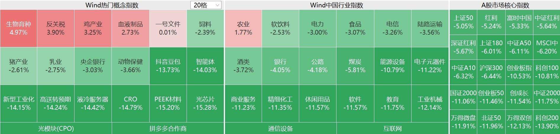 格隆汇4月7日|“贸易战”阴影笼罩,A股重挫,午后跌幅继续扩大。沪指跌近7%,创业板指跌近11%,深证成指跌近9%,北证50、微盘股指数跌超12%,中证2000跌近12%。市场超5200股下跌,仅145股上涨,2041股跌停。 (责任编辑:宋政 HN002)