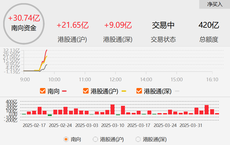 格隆汇4月8日|开盘15min,南下资金净买入港股超30亿港元。