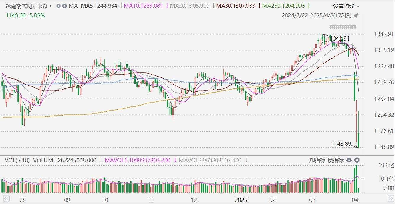 格隆汇4月8日|越南股指VN指数跌幅扩大至5%,创2024年1月以来新低;自4月2日收盘以来累跌超12%。