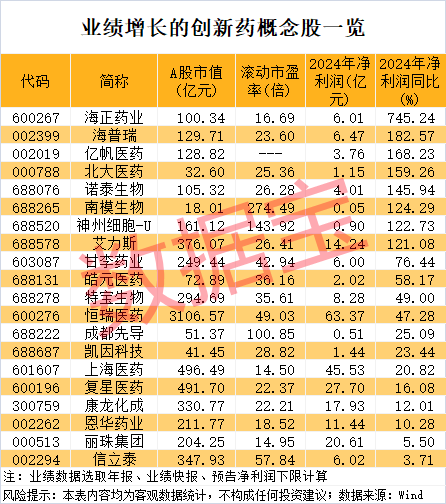 数据是个宝 数据宝 投资少烦恼 创新药迎来双重利好! 关税反制题材持续强势 4月8日早盘,A股迎来反攻,上证指数低开高走,收盘涨近1%。创业板指收盘涨1.78%,盘中一度涨超3.8%。大消费相关板块表现抢眼,酒店餐饮、商业连锁、旅游、农林牧渔、食品饮料等指数涨超3%。 商业连锁行业中,多只股票触及涨停板,孩子王早盘收获“20cm”涨停板,国芳集团(601086)、东百集团(600693)、永辉超市(601933)、供销大集(000564)、红旗连锁(002697)、爱婴室(603214)、中百集团(000759)等多股涨停。 与关税反制相关的题材种业、水产品、粮食概念今日继续走强。种业指数早盘涨幅近13%,秋乐种业继昨日收获“30cm”涨停板后,今日早盘再次收获“30cm”涨停,成为本轮大盘调整以来最大黑马。神农种业涨幅20%,涨幅靠前的还有康农种业、万向德农(600371)、敦煌种业(600354)、绿亨科技、荃银高科(300087)等。 中信证券表示,反制关税措施之下,农业种植产业链是稀缺的、直接受益的板块。第一,本轮关税风暴再次凸显粮食安全的极端重要性。种源自主可控,已成为保障粮食安全的重中之重。种业板块或将再受政策强力支持。第二,提振农产品(000061)价格,直接带来种业、种植公司业绩增长预期;农产品加工板块预计也将出现结构性个股机会。 北京创新医药迎来2.0版专项扶持 北京市连续第二年出台支持创新医药发展的专项政策。4月7日,北京市医保局等九部门发布《北京市支持创新医药高质量发展若干措施(2025年)》(简称《若干措施》),进一步加强对创新药械研、产、审、用全链条政策支持,优化要素资源配置,培育优质创新生态,推动创新药、创新医疗(002173)器械高质量发展。《若干措施》提出将临床试验项目启动整体用时进一步压缩至20周以内、新获批创新药械产品数量不少于15个等创新举措。 《若干措施》提出,要充分利用医疗、医保、医药数据,构建行业数据可信空间,制定数据分类分级管理标准和采集、清洗、脱敏、标注技术指南。建立医疗健康数据标注协作机制,形成规模化专业标注能力,全年建成不少于5个基于器官的高质量数据集,数据规模达50TB。支持医企面向药物研发、多中心临床试验、药物警戒、远程会诊等场景,畅通数据安全出境便利化路径,加快推动跨主体高频流通利用。 同时,《若干措施》明确,鼓励企业在京设立人工智能研发中心,加强数据需求对接,开展人工智能赋能新靶点发现、新机制探索、化合物筛选、病例随访等研究。建设医疗健康行业大模型测评体系,面向AI+病理、AI+医学影像、AI+辅助诊断、AI+手术规划、AI+制药等方向,支持不少于10个场景的模型开发应用。 创新药发展潜力十足 同一天,深圳也发布了支持创新药发展的重磅文件。深圳市发展和改革委员会等部门印发《深圳市全链条支持医药和医疗器械发展若干措施》的通知。其中提出,支持创新产品应用推广。以更大力度支持创新性强、疗效确切、临床急需的创新药械进入医院、进入医保,大力发展“首发经济”。 中信建投研报表示,关税政策冲击下,对医药产业链的影响较为复杂,并且可能仍然存在变数。本次美国对中国加征关税中,药品暂不涉及。目前时点,看好暂不受关税影响的创新药行业,自主可控下的器械、血制品国内份额提升机会,内需为主的中药、药店及流通等行业与关税关联度不大。长期看,出海仍应该是医药企业重要的战略方向,坚定看好出海带来的增量机会。 近年来,国家医保目录常态化调整,将创新药从上市到纳入医保的时间大大缩短,为新药快速进入市场提供了可能。 2024年国家医保目录纳入的“全球新”创新药数量创新高,是对创新药企最直接的激励。此外,国家医保局透露,初步匡算,近年来推行的药品耗材集中带量采购为新药耗、新技术的准入以及医疗服务价格调整创造了超5000亿元的医保基金空间,给新药纳入目录提供了支撑。这意味着,未来,新药进入国家医保目录仍有较大空间。 高增长创新药概念股出炉 二级市场表现来看,今年创新药概念股整体表现平淡。数据宝统计,截至4月7日收盘,创新药概念股今年以来平均下跌2.15%。泽Z制药-U、艾力斯、荣昌生物、康弘药业(002773)、海思科(002653)、艾迪药业6股累计涨幅超20%。微芯生物(688321)、康希诺、前沿生物-U、康泰生物(300601)、ST香雪等年内跌幅超15%。 业绩数据方面,根据年报、业绩快报、预告净利润下限(无下限则取公告数值)计算,2024年净利润同比增长(含扭亏为盈)的创新药概念股有20只。海正药业(600267)、海普瑞(002399)、亿帆医药(002019)、南模生物、神州细胞-U净利润为扭亏状态。 以海正药业为例,公司2024年实现净利润6.01亿元,上年同期净利润亏损0.93亿元。报告期内,公司聚力营销转型与变革,克服产品降价等因素影响,主要产品获得较好的增长;同时通过技术革新和运营效率的提升,降本增效明显,有效提升公司盈利水平。此外,公司因定向可转换公司债券回售事项,增加投资收益约1.55亿元。 部分公司在上一年盈利的情况下,2024年净利润有望大幅增长,如北大医药(000788)、诺泰生物、艾力斯、甘李药业、皓元医药、恒瑞医药(600276)等。 以龙头公司恒瑞医药为例,公司2024年实现净利润63.37亿元,同比增长47.28%。报告期内,公司创新药销售收入达138.92亿元(含税,不含对外许可收入),同比增长30.6%。公司2款1类创新药(富马酸泰吉利定