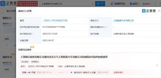 仟茂科技讯 4月8日上午消息,企查查APP显示,近日,极越汽车关联公司上海集度汽车有限公司新增一条被执行人信息,执行标的约2.7亿元,执行法院为上海市徐汇区人民法院,涉及上海银行股份有限公司漕河泾支行与该公司金融借款合同纠纷。企查查显示,上海集度汽车有限公司成立于2021年11月,夏一平为法定代表人、总经理、董事,由集度汽车(香港)有限公司全资持股。 据悉,此前极越汽车爆雷,裁员、社保欠缴、供应商欠款等问题曝光,引发公众关注。(罗宁) 责任编辑:郝欣煜 (责任编辑:张晓波 )