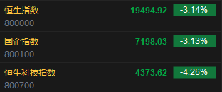 4月9日消息,美股周二先升后跌,市场继续关注关税实施情况,大市早段一度急升超过1,400点,其后急转直下,曾倒跌超过800点,尾市跌幅稍为收窄,三大指数均录得跌幅收市。美元走势向下,美国十年期债息回升至4.29厘水平,金价低位反弹,油价则持续受压。 今日港股三大指数集体低开,恒生指数跌3.14%,报19494.92点,恒生科指跌4.26%,国企指数跌3.13%。盘面上,科网股普遍低开,联想集团、哔哩哔哩跌超6%,百度集团、京东集团跌超5%,快手、阿里巴巴跌超4%,腾讯控股、美团跌超3%;生物医药板块集体低开,泰格医药(300347)跌超11%;汽车股全线低开,蔚来跌超7%;农业板块部分坚挺,十月稻田涨超6%。 (责任编辑:宋政 HN002)