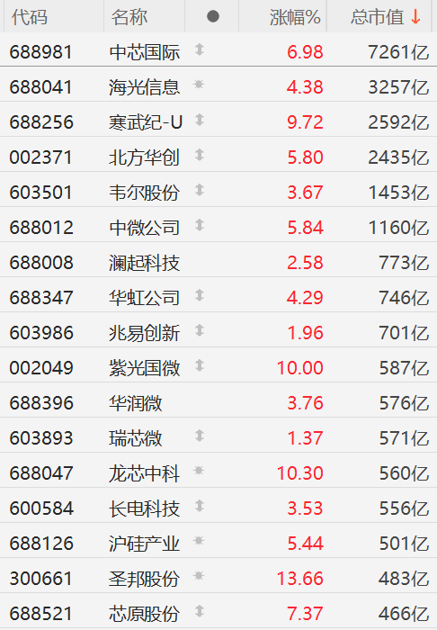 格隆汇4月9日|A股市场半导体板块强势拉升,其中,圣邦股份(300661)涨超13%,龙芯中科涨超10%,紫光国微(002049)10CM涨停,寒武纪-U涨近10%,芯原股份涨超7%,中芯国际涨近7%,中微公司(688012)、沪硅产业、北方华创(002371)涨超5%,海光信息、华虹公司涨超4%,华润微、韦尔股份(603501)、长电科技涨超3%。 (责任编辑:宋政 HN002)