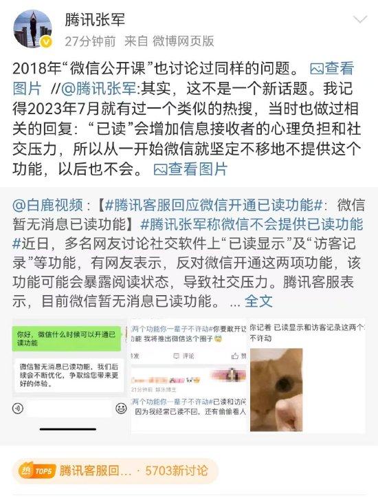 仟茂科技讯 4月9日下午消息,针对有网友反馈社交软件上“已读显示”及“访客记录”等功能会暴露阅读状态,导致社交压力。今日,腾讯公司公关总监张军在微博发文称,“‘已读’会增加信息接收者的心理负担和社交压力,所以从一开始微信就坚定不移地不提供这个功能,以后也不会。”(文猛) 责任编辑:何俊熹 (责任编辑:郭健东 )
