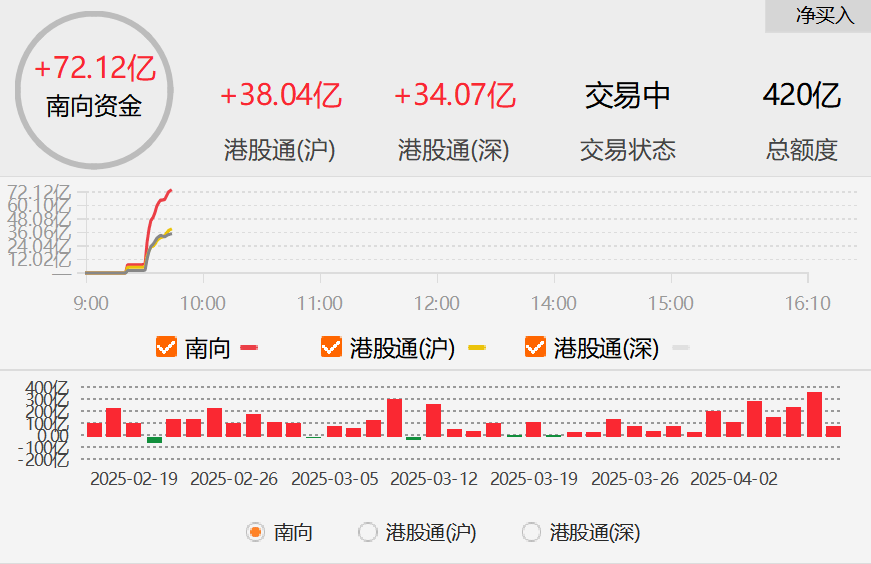 格隆汇4月10日|港股继续强势反攻。10日早盘,港股大幅高开,恒指涨2.69%,恒科指涨近4%,科网龙头集体飙升,小米集团-W领涨近7%,腾讯控股、阿里巴巴-W、哔哩哔哩-W均涨超4%。重仓港股互联网龙头的港股互联网ETF(513770)跳空高开,场内价格飙涨逾5%,站上半年线。南下资金净买入港股超70亿港元。 昨日港股迎来历史性时刻,南向资金单日净买入额超355亿港元,创港股通开通以来最高单日净买入纪录。年初以来,南向资金累计净流入港股已超5736亿港元,为历史同期最高,显示出资金对港股市场的坚定信心。 市场分析,经过近期的快速调整,港股的估值水平再次回到低位,配置性价比凸显。此外,港股市场成分的盈利结构较好,对潜在的企业盈利修复和政策信号更为敏感。随着国内经济增长政策的逐步发力,港股市场有望迎来更多结构性机会。 (责任编辑:宋政 HN002)