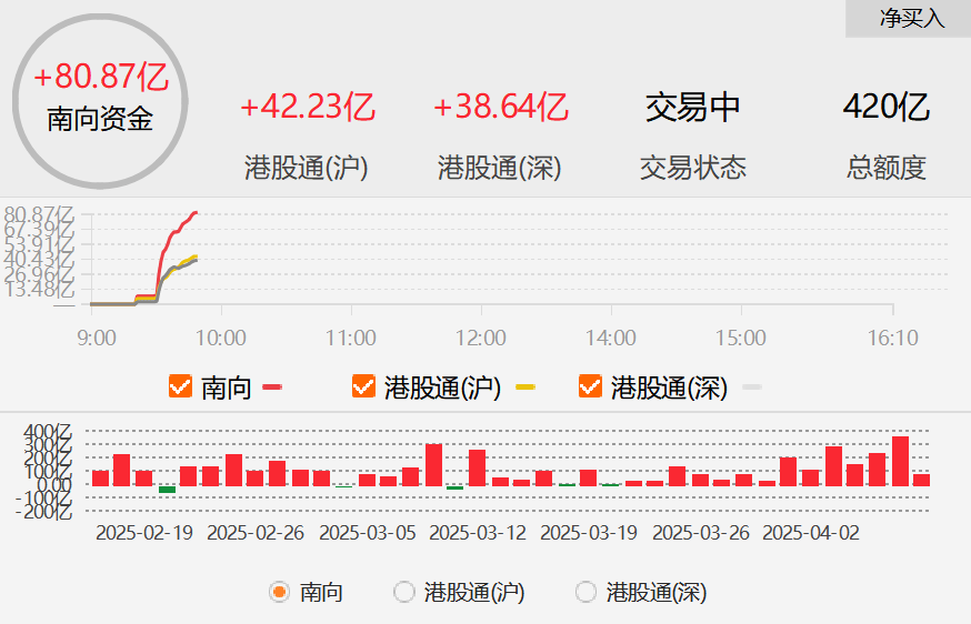 格隆汇4月10日|港股大幅高开,恒指涨2.7%,国指涨2.6%,恒生科技指数涨3.5%。盘面上,大型科技股全线上涨,小米集团、腾讯控股、阿里巴巴大涨,带动港股科技ETF(159751)涨6%。南下资金净买入港股超80亿港元。 截至发稿,南下资金今日净买入港股超80亿港元。昨日,南下资金大幅净买入港股355.86亿港元,创有史以来单日净买入额新记录;其中,净买入阿里巴巴-W 37.4亿、腾讯控股28.44亿。 港股科技ETF跟踪的指数中,小米集团(13.16%)+阿里巴巴(11.52%)+比亚迪(002594)(9.37%)+腾讯(8.97%)+美团(7.41%)权重达50.42%,科技股含量高,弹性大。 港股科技ETF(159751)联接基金(A:021294,C:021295,I:022884) (责任编辑:宋政 HN002)