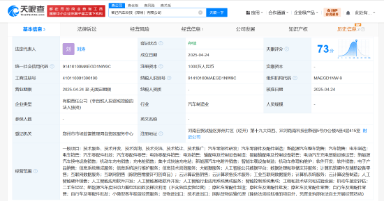 | 仟茂科技讯 4月29日上午消息,天眼查App显示,近日,智己汽车科技(郑州)有限公司成立,法定代表人为刘涛,注册资本1000万人民币,经营范围含汽车零部件研发、新能源汽车整车销售、汽车零配件零售、智能输配电及控制设备销售、新能源汽车电附件销售、智能车载设备制造、人工智能公共数据平台、数据处理和存储支持服务等,由智己汽车科技有限公司全资持股。(罗宁)