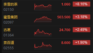 茶饮股集体上行,奈雪的茶涨超8%。现制茶饮品牌沪上阿姨4月28日起正式开启招股,全球发行241.13 万股,每股招股价95.57至113.12港元。截至今早10点左右,沪上阿姨I展额已增至 48.62亿元,I展超购约 178.24倍。国金证券(600109)表示,近期头部茶饮企业陆续上市,行业竞争加剧背景下,看好低价格带格局稳定赛道,以及中价格带产品性价比高供应链扎实的企业。