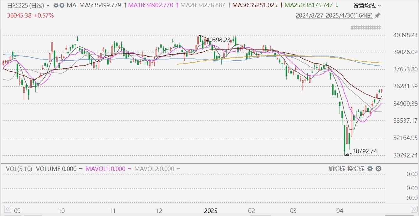 格隆汇4月30日|日经225指数收盘上涨205.39点,涨幅0.57%,报36045.38点。