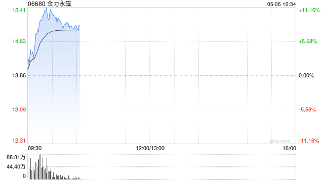 稀土概念股早盘走强,金力永磁(300748)(06680)上涨8.95%,报15.10港元;中国稀土(00769)上涨7.69%,报0.42港元。